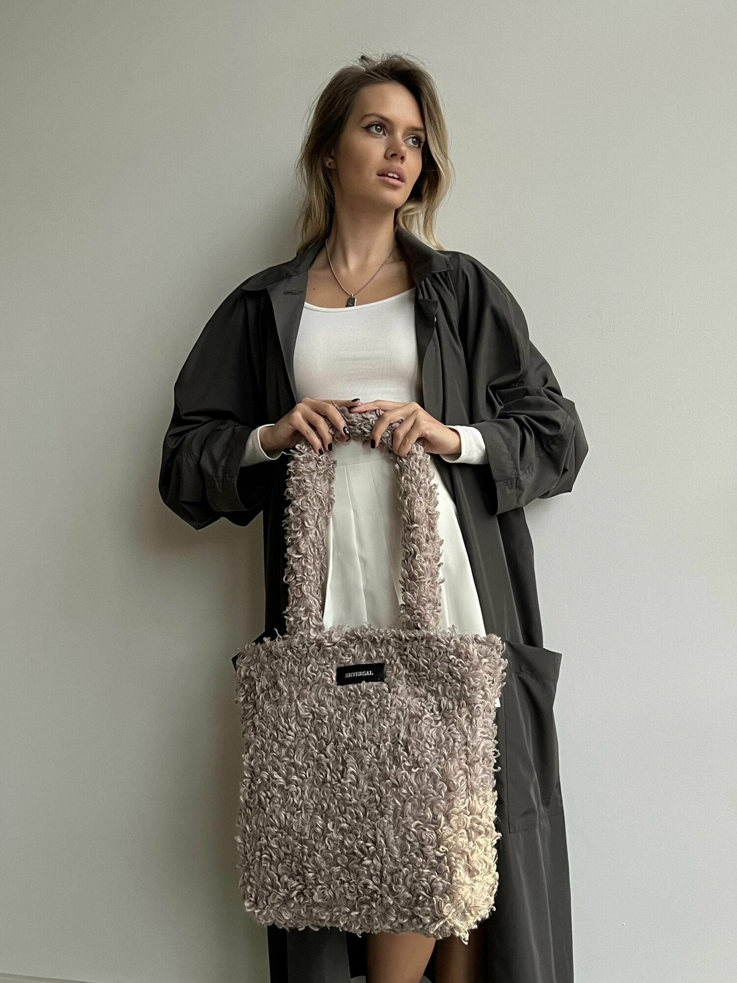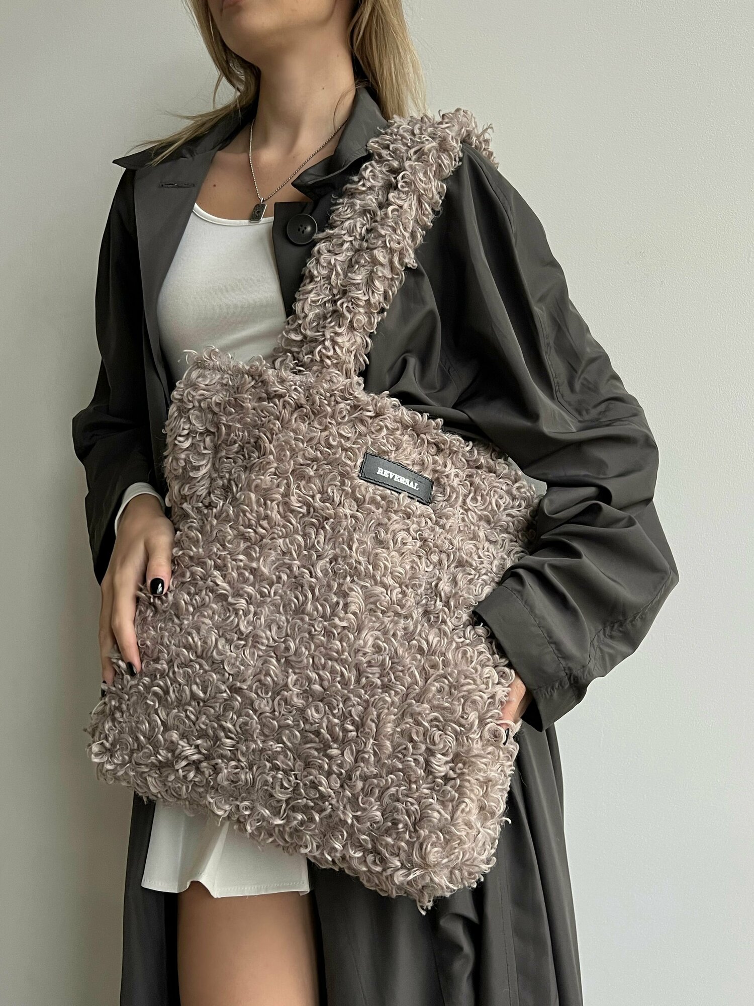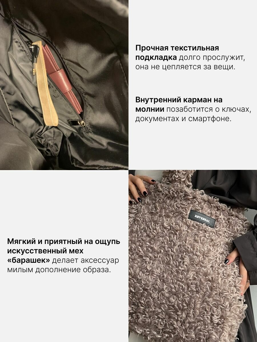 Сумка плюшевая через плечо большая шоппер из меха, Reversal , 8857R_Капучино интересное: