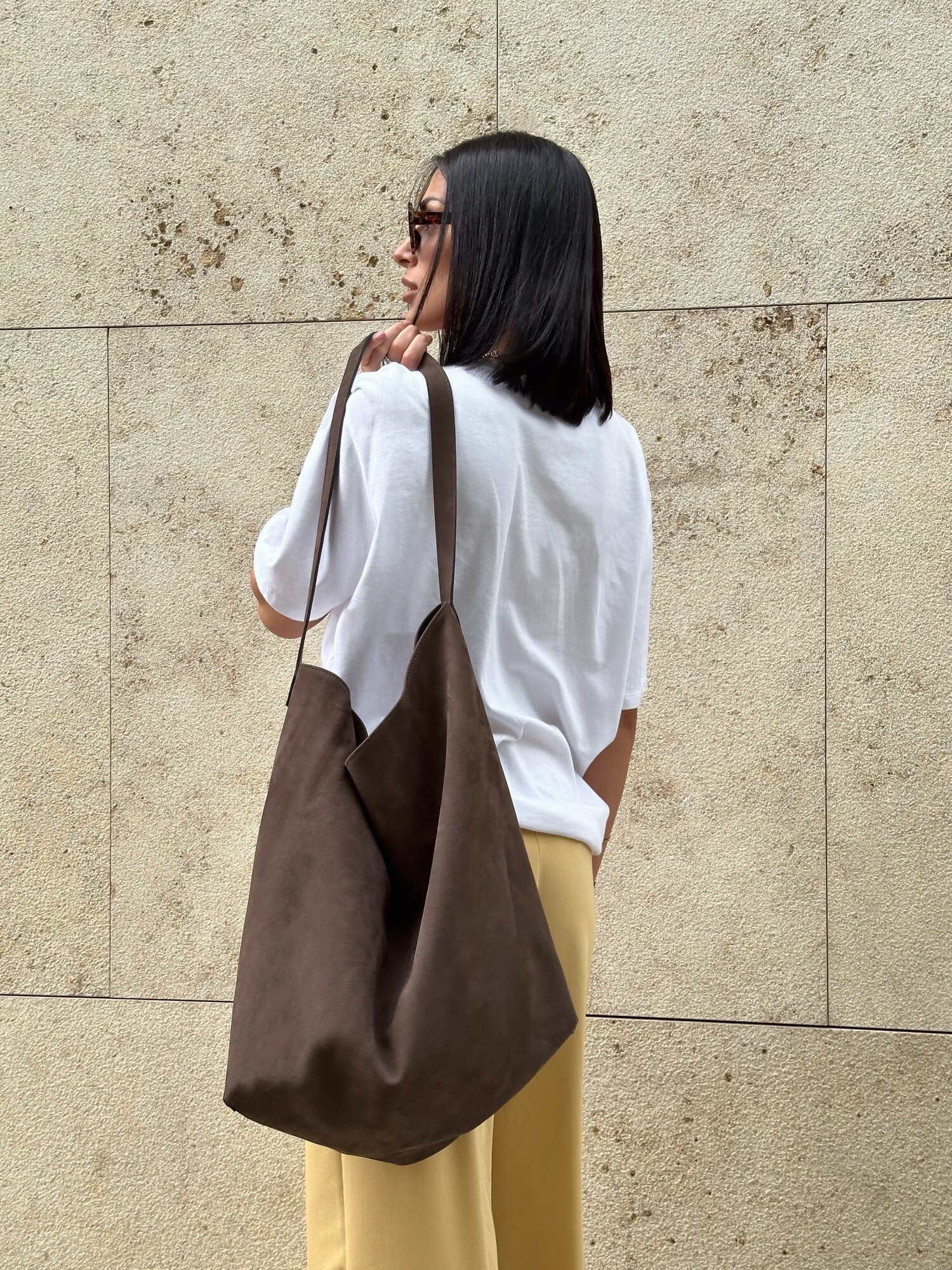 Сумка замшевая шоппер большой натуральная кожа , Lamacco , 8888L-XL_Темно-коричневый-нубук интересное: