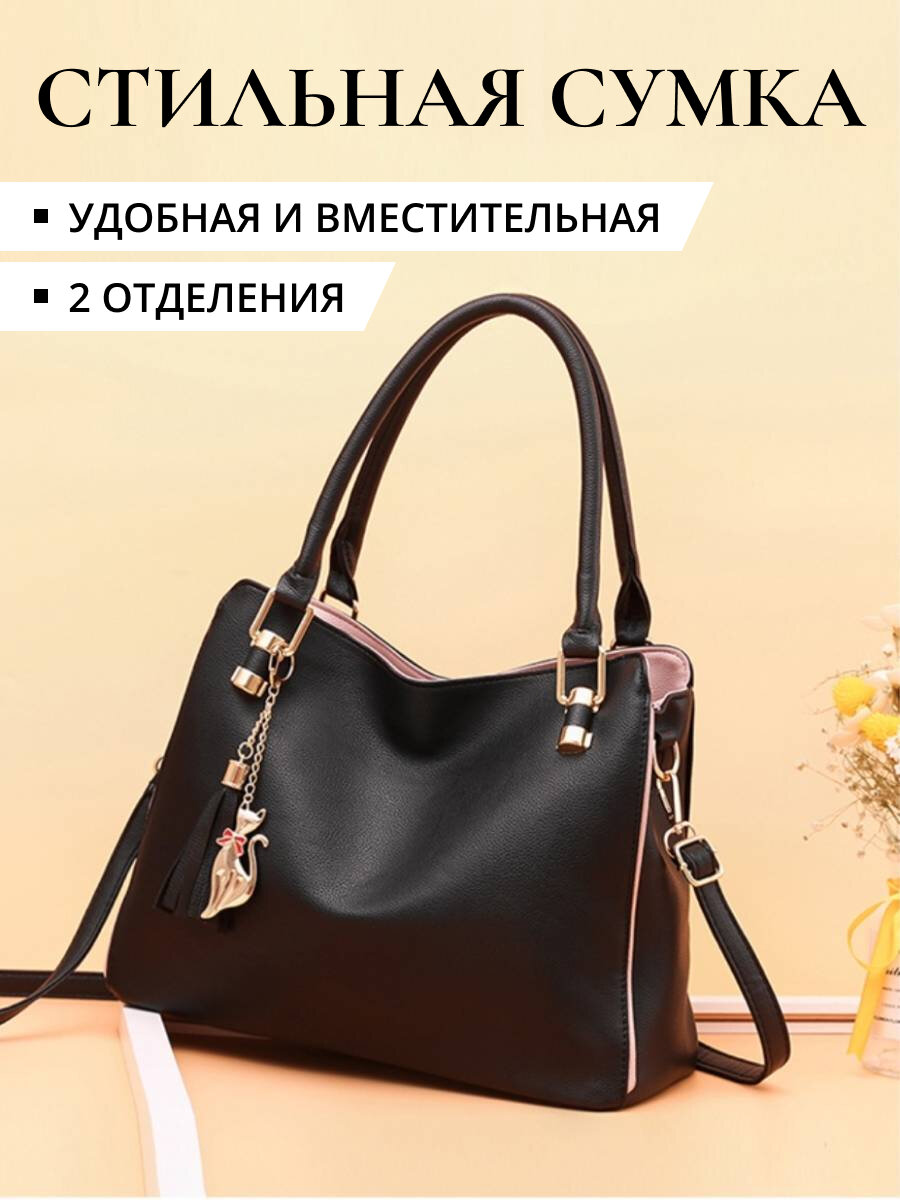 Сумка женская кожаная черная повседневная вечерняя через плечо с ручками повседневная вместительная сумочка интересное: