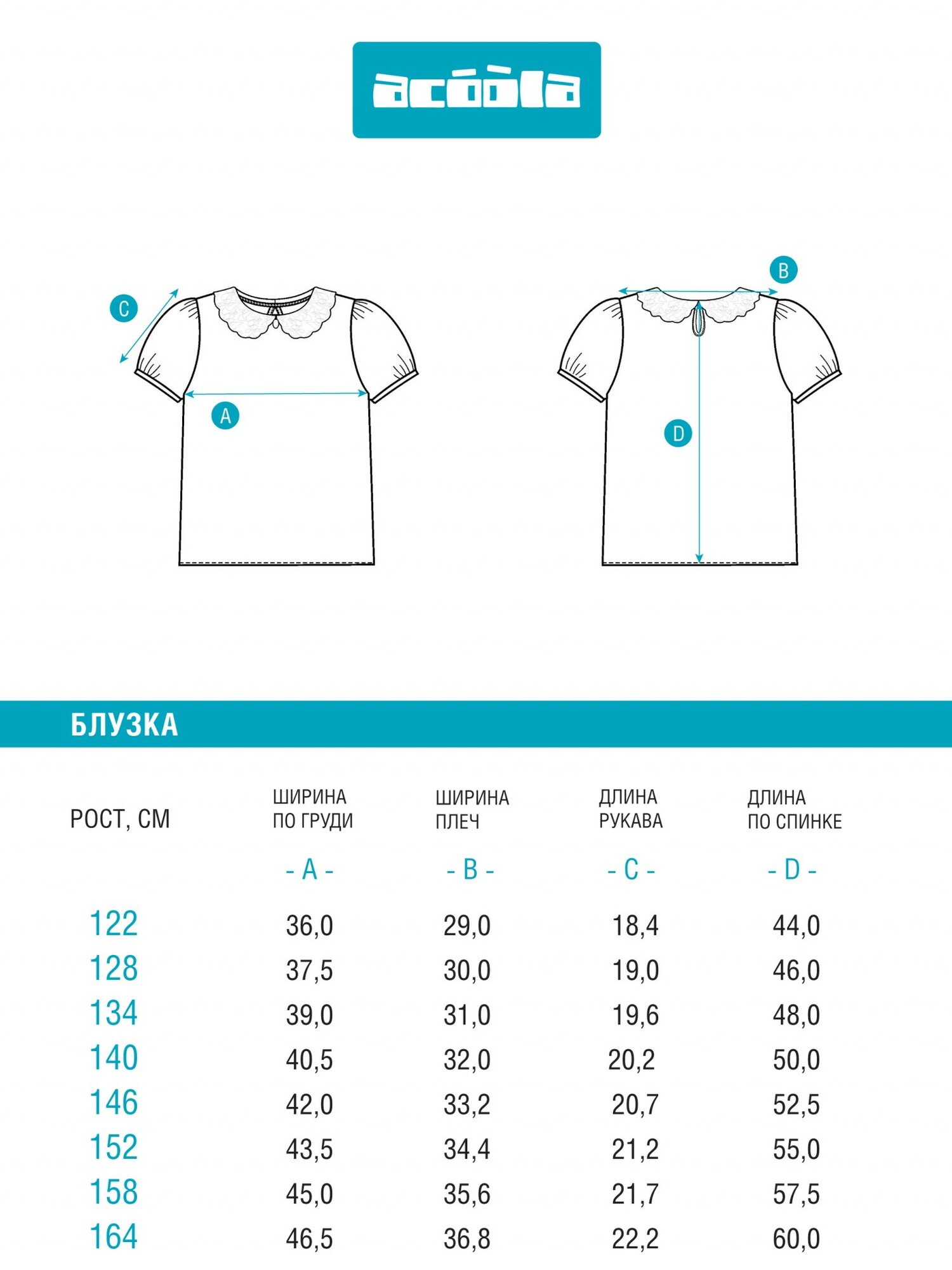 Школьная блуза Acoola, размер 158, набивка
