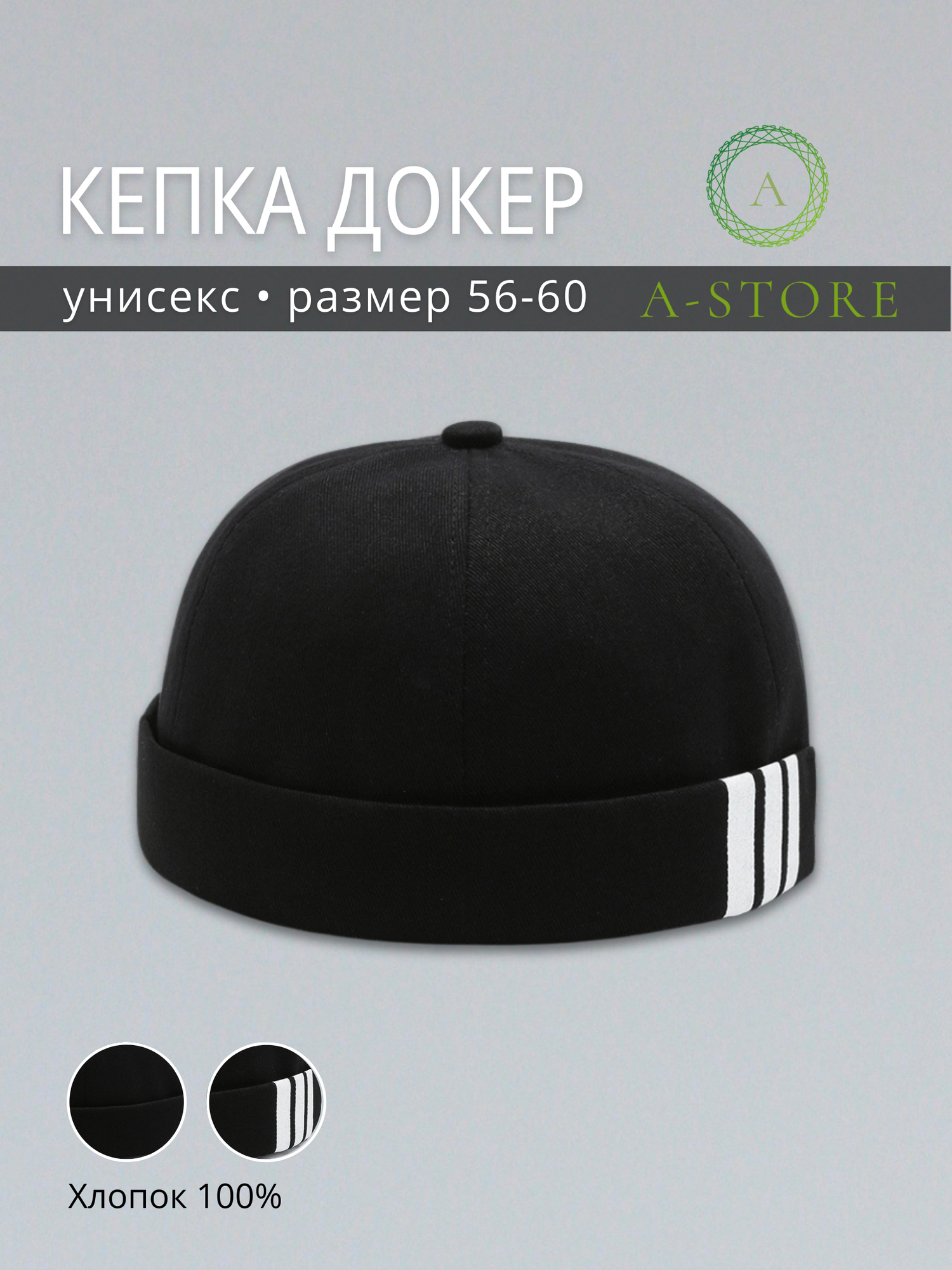 Купить Кепка докер; докер; черная тканевая с полосками A-Store; подарок; подарок мужчине