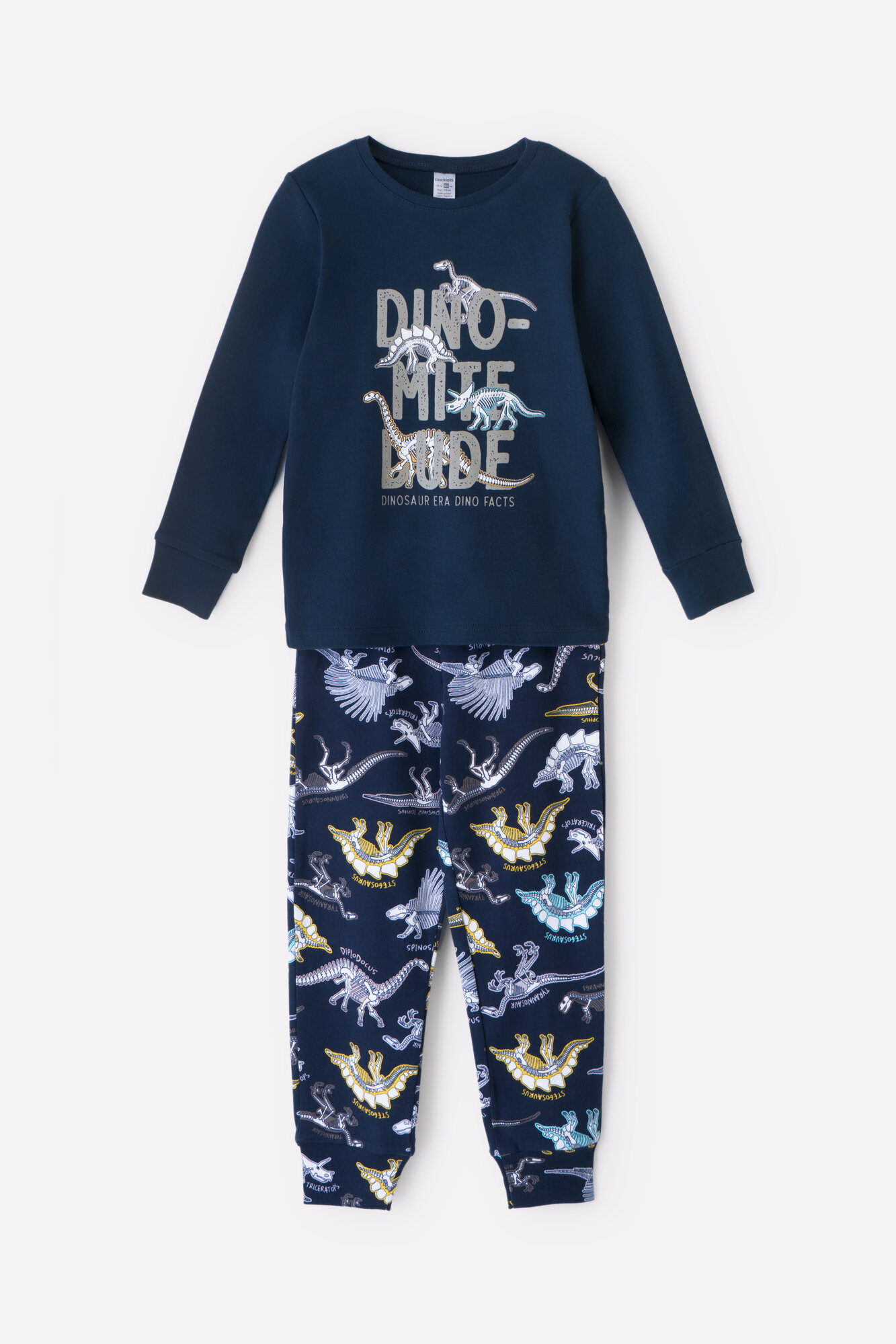 Купить Пижама для мальчика из натурального хлопка, Crockid К 1541/24/индиго,цветные динозавры р 56/110