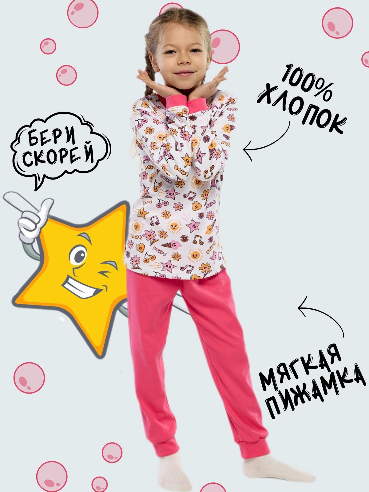 СохранитьДомашняя пижама, Дети в Цвете, цвет белый, розовый, размер 104 интересное: