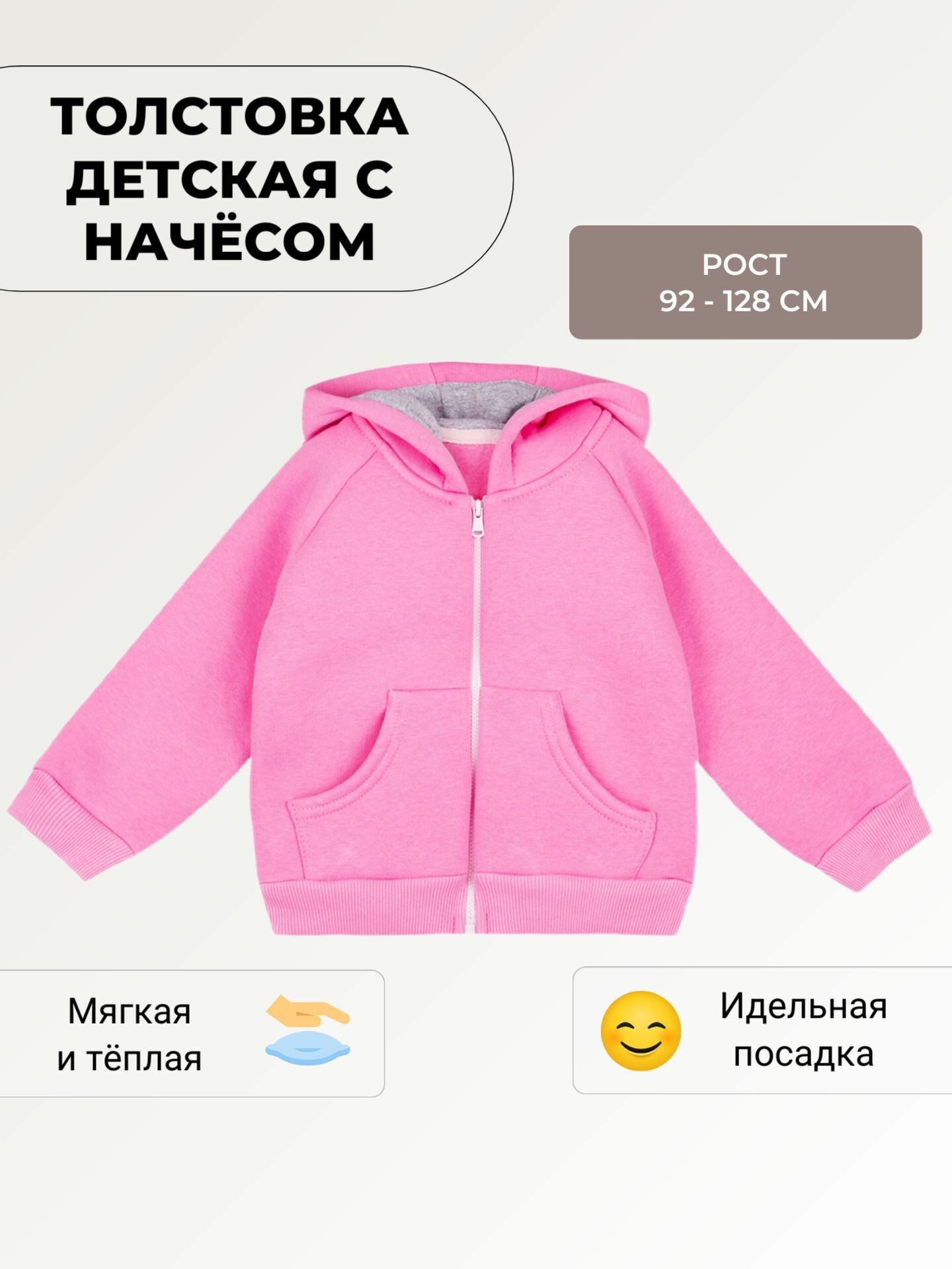 Толстовка детская на молнии с капюшоном розовая рост 92