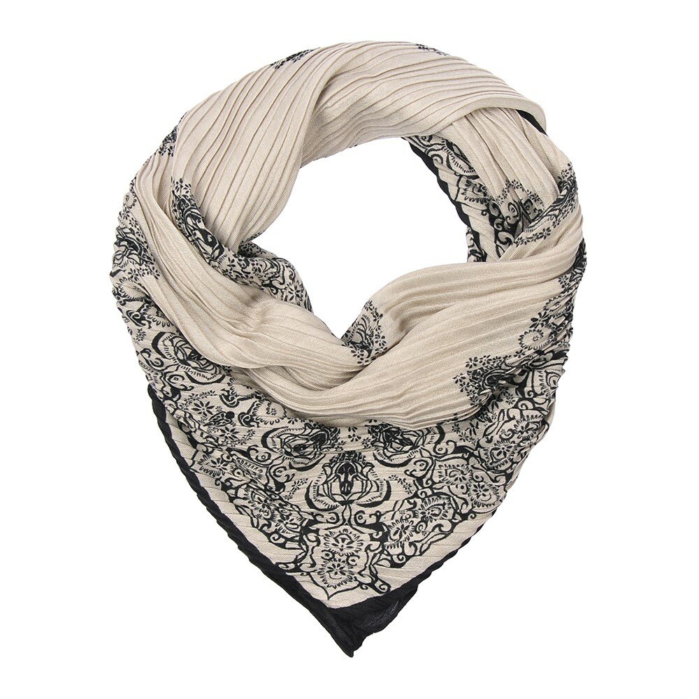 Большой гофрированный платок | Хлопкоподобная ткань с принтом в бежевых тонах, 100х100 см 100х100