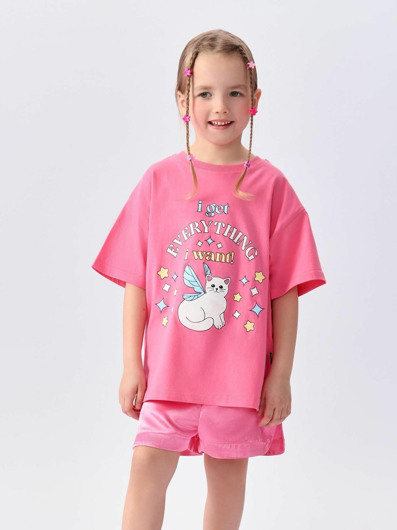 88169, Шорты детские атласные Happy Baby шорты для девочки, пояс на резинке, спортивный стиль, розовые, размер 86-92 интересное: