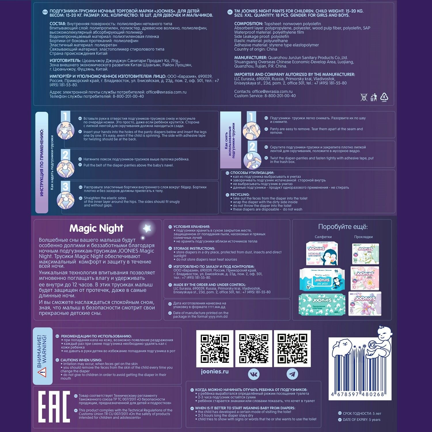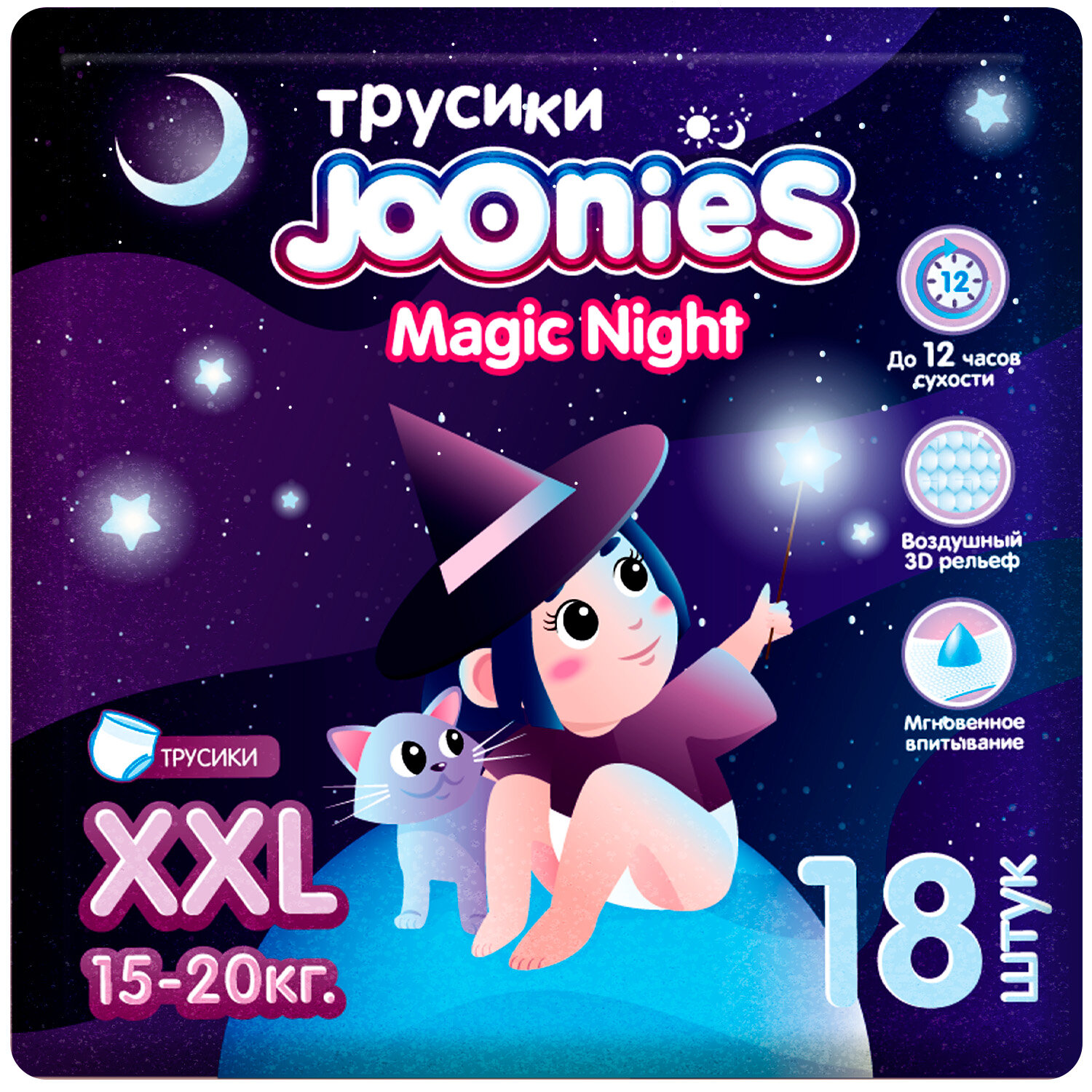 JOONIES Magic Night трусики, р. XXL (15-20 кг) 18 шт. интересное: