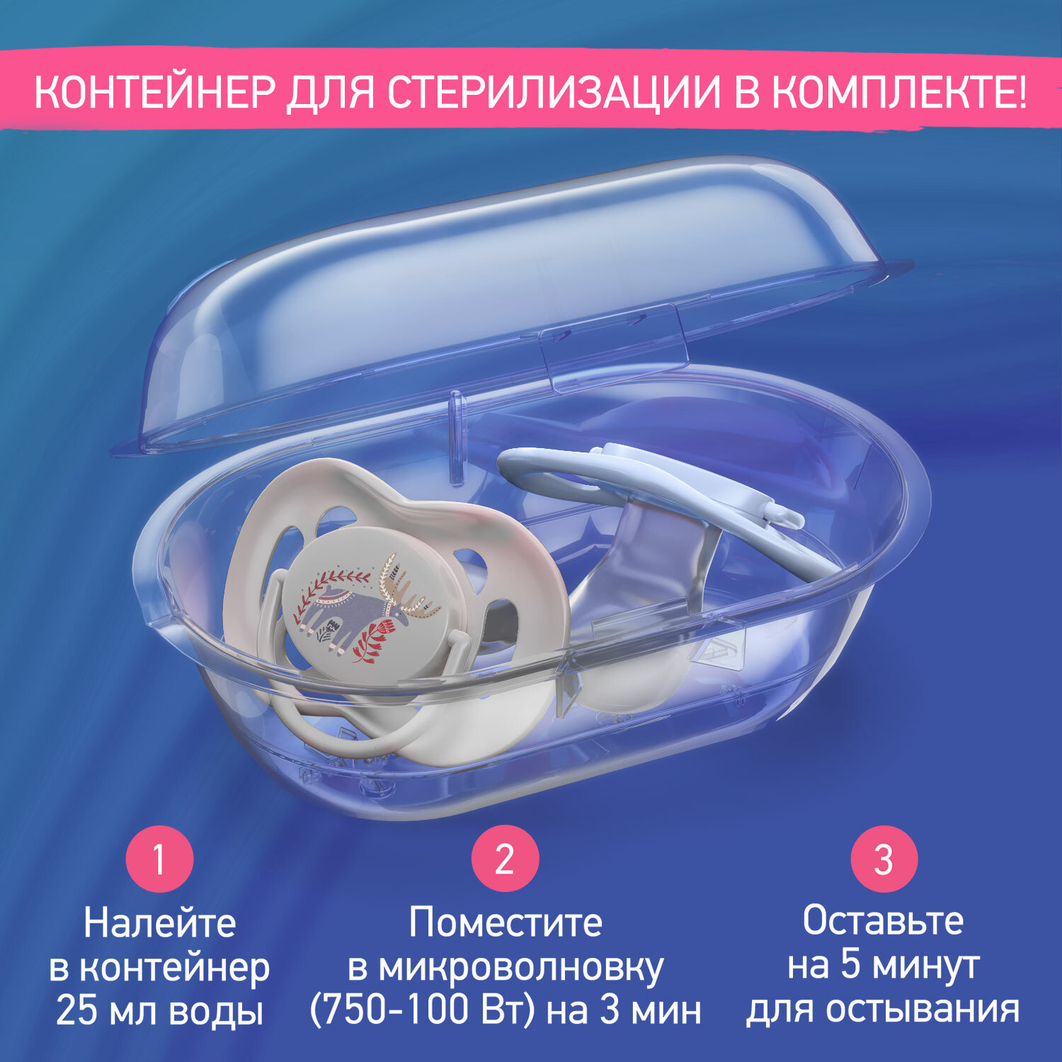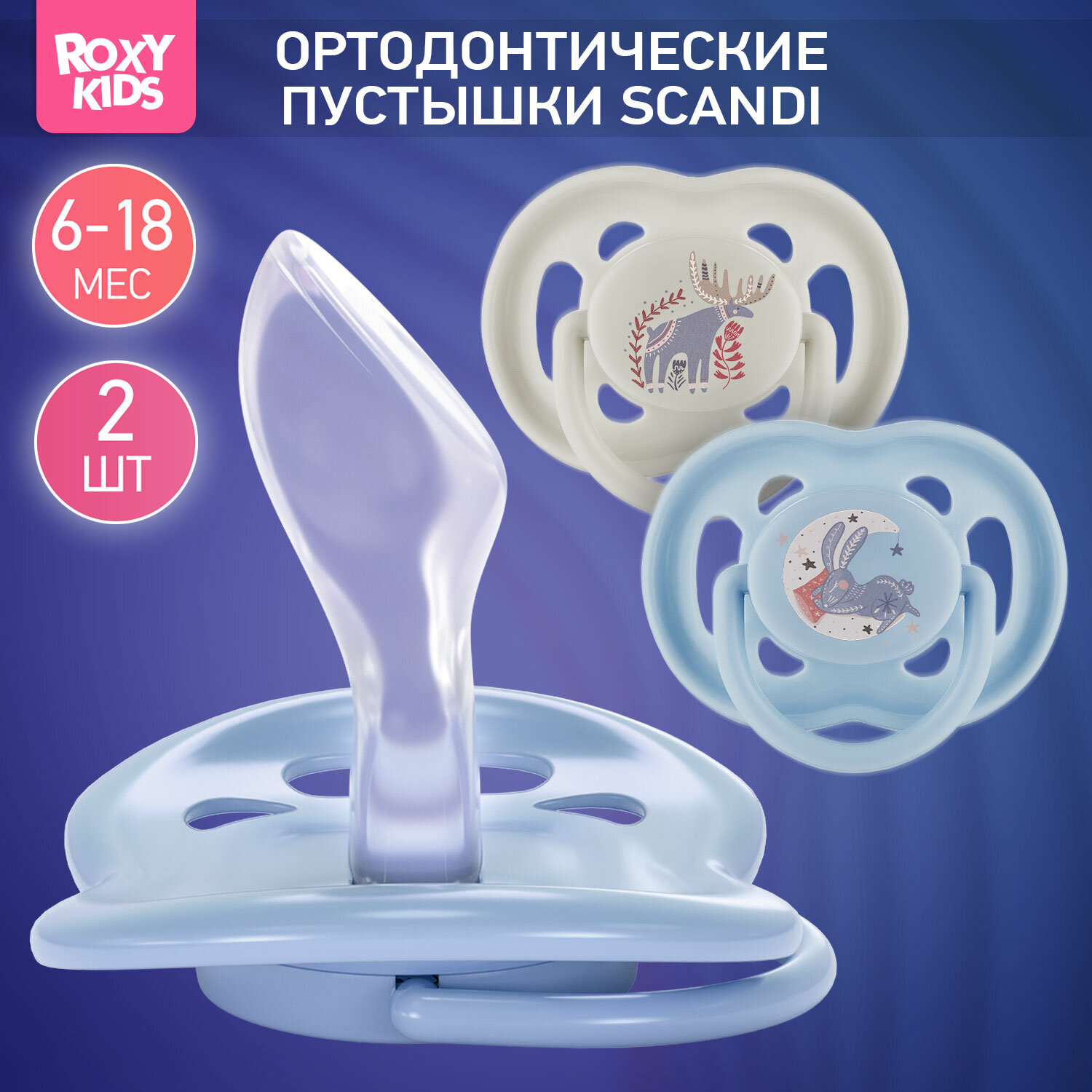 Купить Соска-пустышка силиконовая ортодонтическая SCANDI в контейнере 2шт от 6 до 18 месяцев
