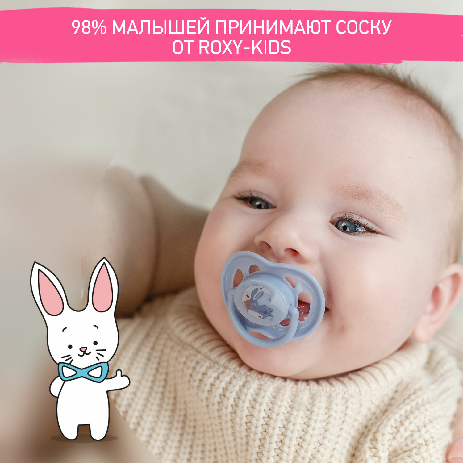 Соска-пустышка силиконовая ортодонтическая BUNNY в контейнере 2шт, от 6 до 18 месяцев