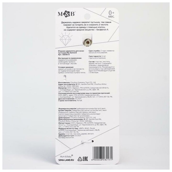 | Комплектация | Игрушка - держатель для пустышки, упаковка |
