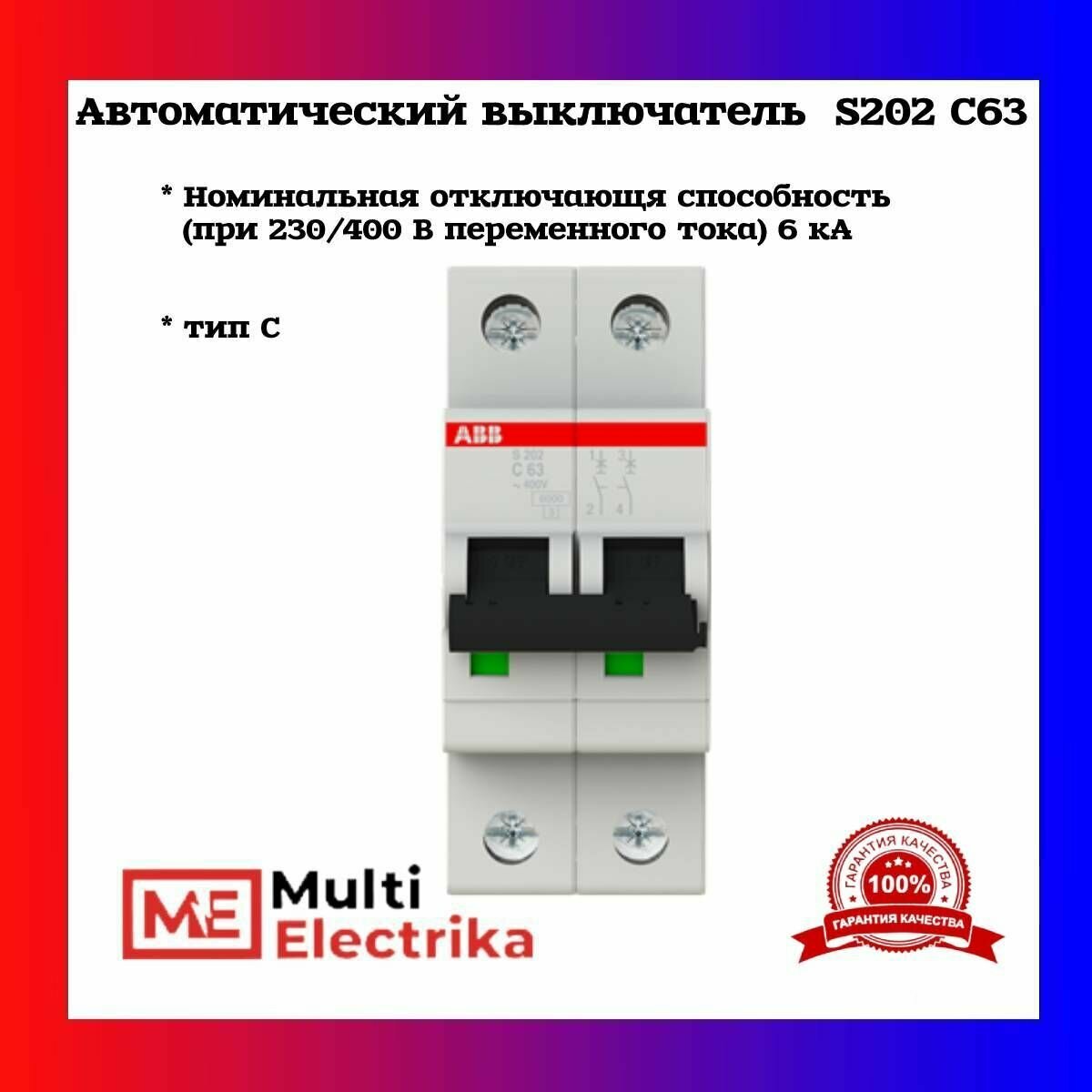 Ниже Вы можете прочитать отзывы на ABB Выключатель авт. мод. 2п C 63А S202 6кА 2CDS252001R0634, ознакомится с подробными характеристиками, посмотреть интересные обзоры и фотографии на ABB Выключатель авт. мод. 2п C 63А S202 6кА 2CDS252001R0634.