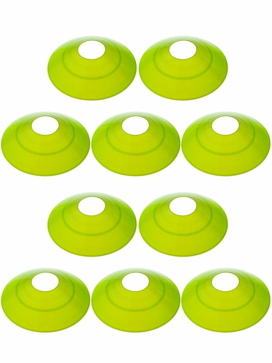 Купить Конусы фишки спортивные Estafit 10 штук высота 5 см, диаметр 19 см, фишки для футбола, зеленые
