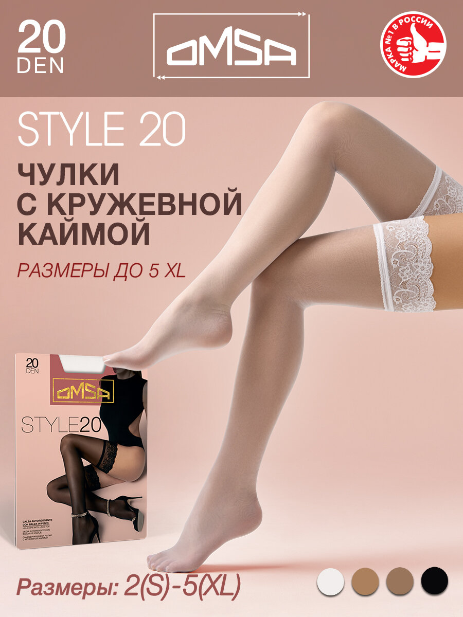 Чулки женские OMSA STYLE 20 den эластичные с кружевной каймой на силиконовой основе цвет Daino размер 4
