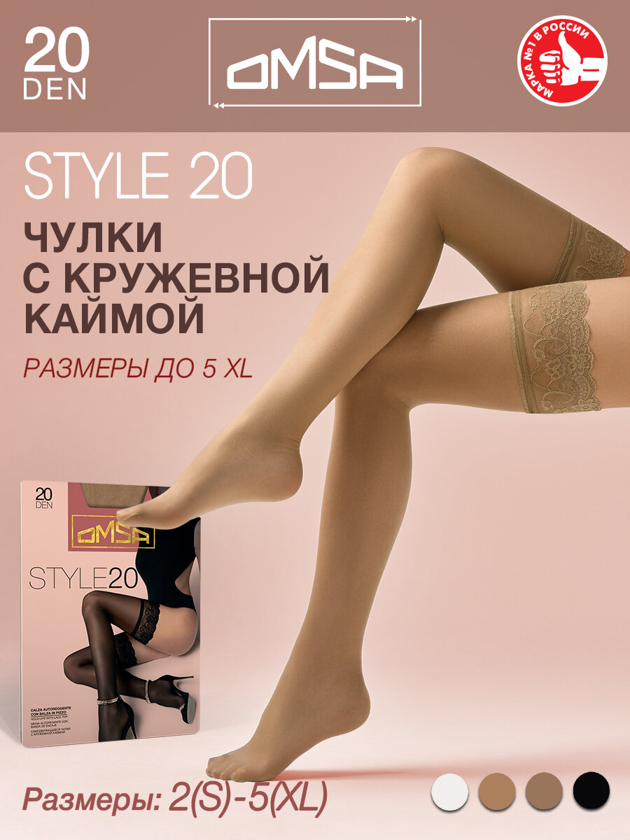 Чулки женские OMSA STYLE 20 den эластичные с кружевной каймой на силиконовой основе цвет Daino размер 5