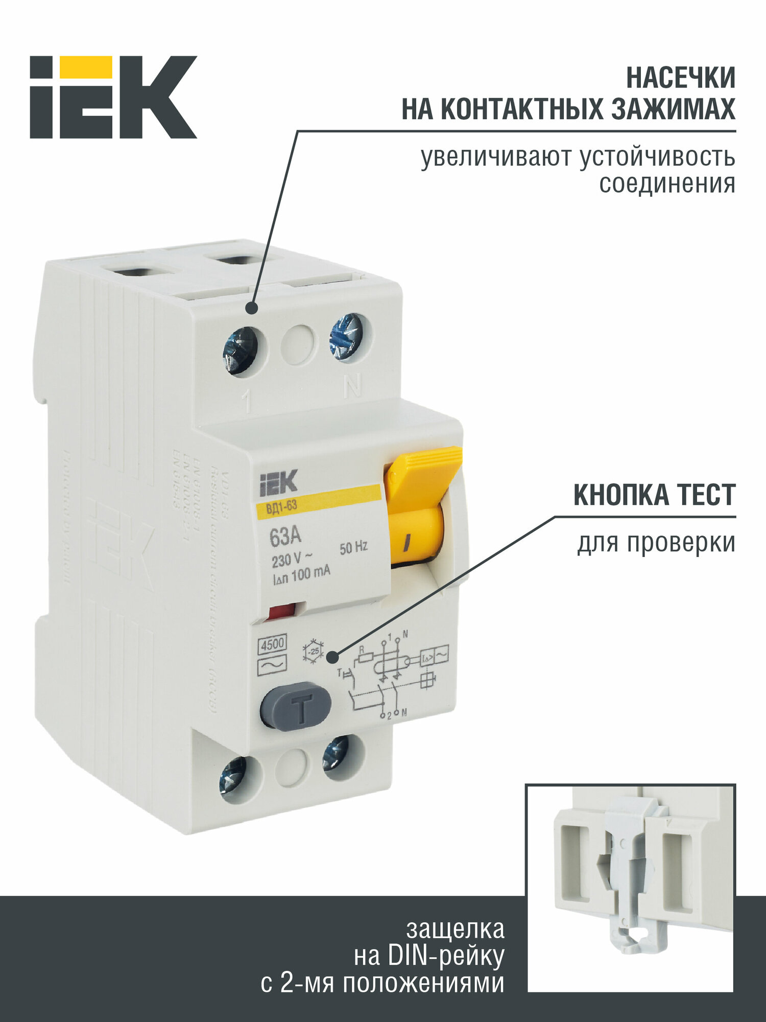 Устройство защитного отключения (УЗО) 2п 63А 100мА ВД1-63 (MDV10-2-063-100) IEK