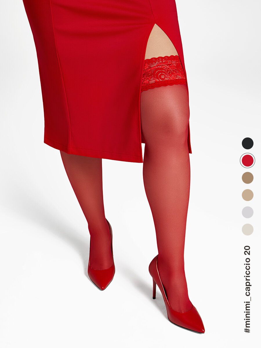 Чулки женские тонкие с кружевом на силиконовой основе MiNiMi Capriccio 20 den, размер 2=S-M, цвет Rosso=Красный