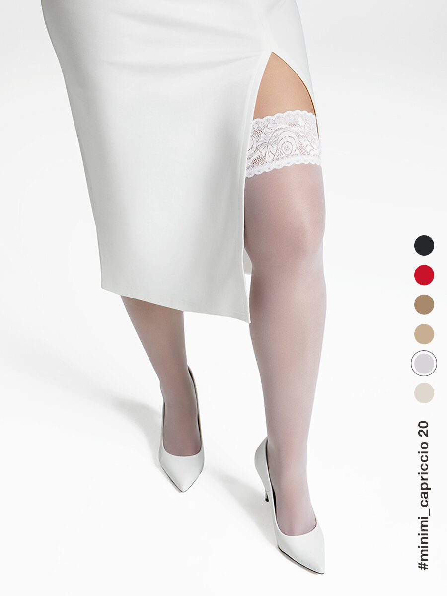 Чулки женские тонкие с кружевом на силиконовой основе MiNiMi Capriccio 20 den, размер 5=XL, цвет Bianco=Белый