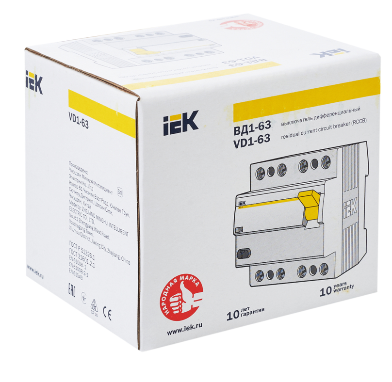 Электромеханический выключатель дифференциального тока (УЗО) Оригинал 4п трехфазное 63А 100мА тип AC тип АС ВД1-63 IEK ИЭК MDV10-4-063-100