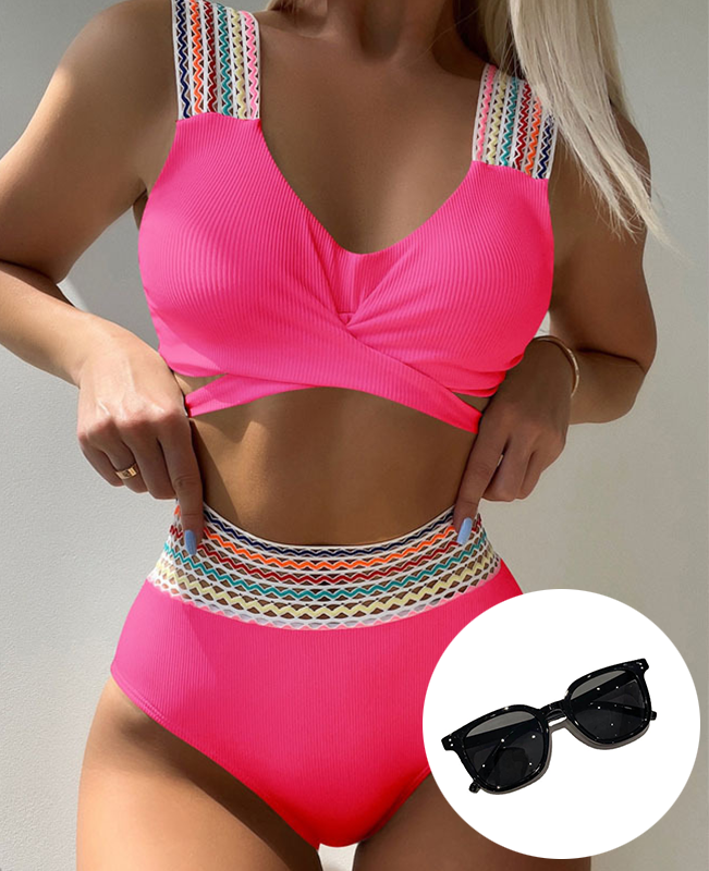 Купальник раздельный Beautyone, размер 48-50, XL, цвет розовый, модель бикини с солнцезащитные очки.
