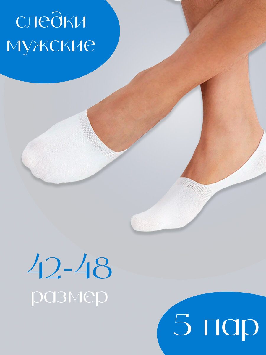 Купить Носки/Следы мужские укороченные "Apollon" 41-47 р-р/с бесшовной технологией /5 пар в комплекте/Набор носков 5шт/Хлопок 80%/Белые
