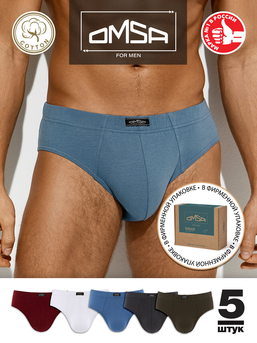 Трусы - слипы мужские OMSA OmB 1223 с закрытой резинкой комплект 5 пар Militari/Jeans/Bianco/Bordo/Blu scuro 46(M)