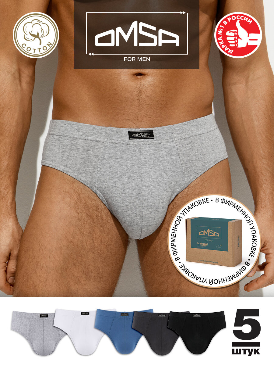 Трусы - слипы мужские OMSA OmB 1223 с закрытой резинкой комплект 5 пар Grigio melange/Grigio Scuro/Militari/Jeans/Bianco 44(S)