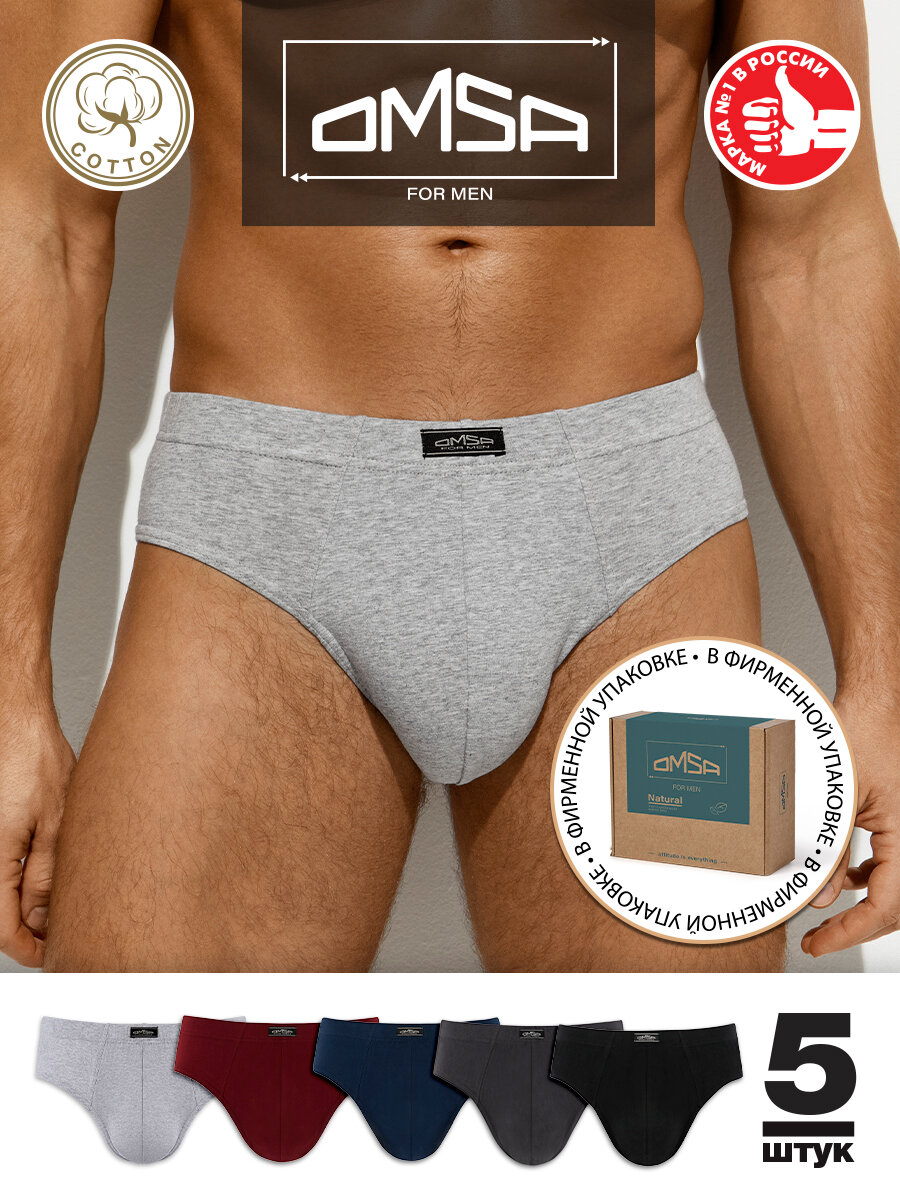 Трусы - слипы мужские OMSA OmB 1223 с закрытой резинкой комплект 5 пар Bianco/Grigio melange/Bordo/Blu scuro/Nero 46(M)