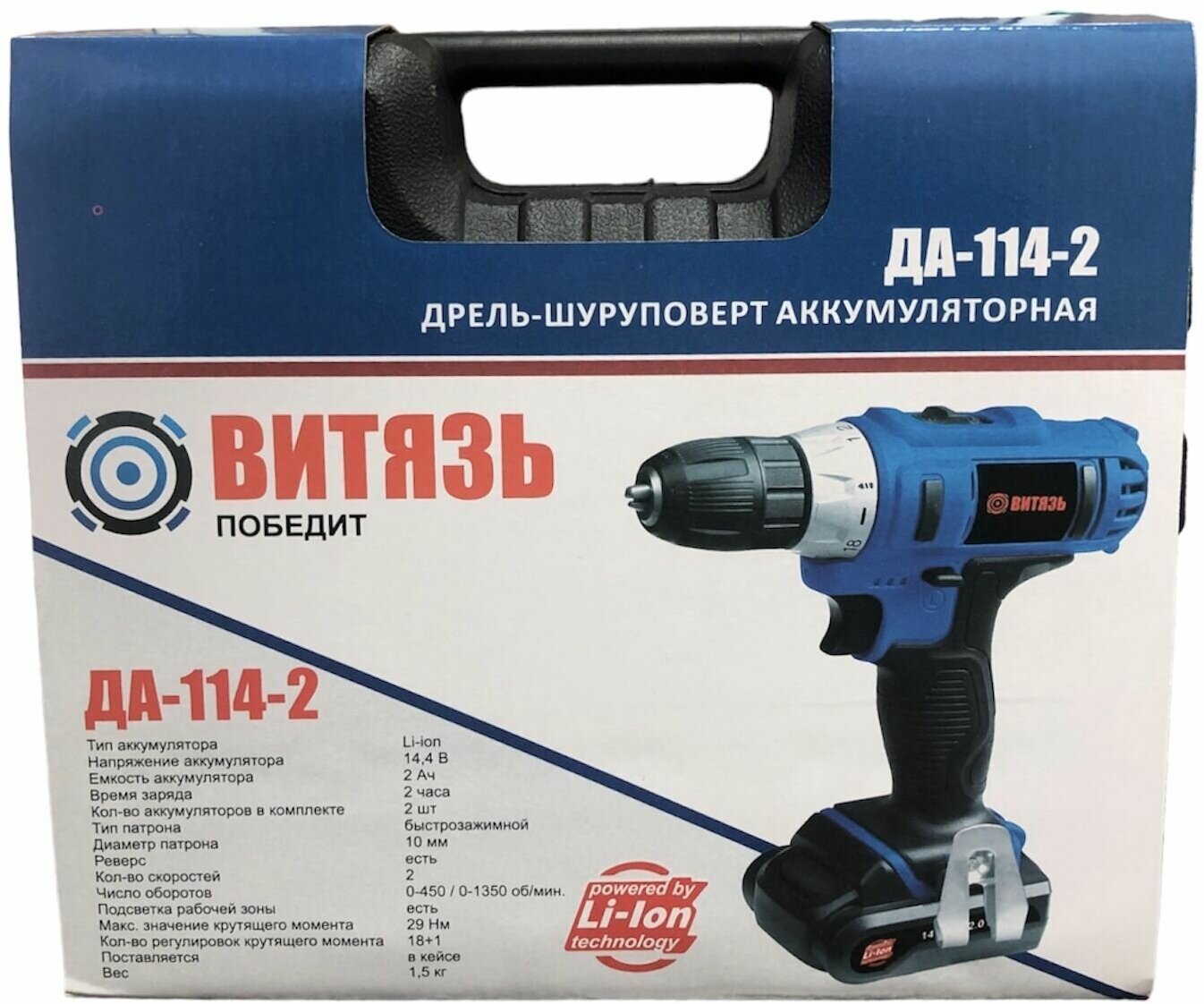Аккумуляторная дрель-шуруповерт витязь ДА-114-2