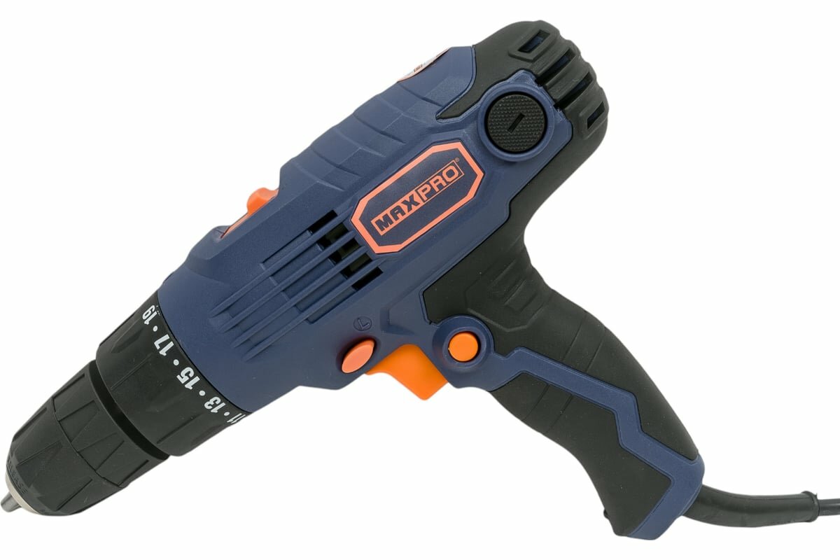 Купить MAX-PRO Дрель-Шуруповерт электрическая 300 Вт; 0-450/0-1350об/мин; подсветка ; быстрозажимной патрон 10мм; резиновые вставки; 24,0 Нм; 19+1; 1,1 кг; б