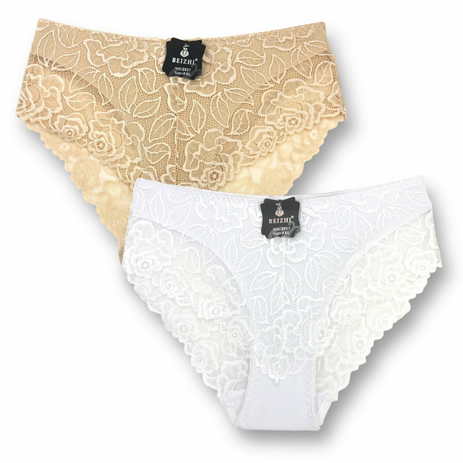 Трусы женские "Beizhi" N.2537, 3XL, Белый, Бежевый , 2 шт., fbo