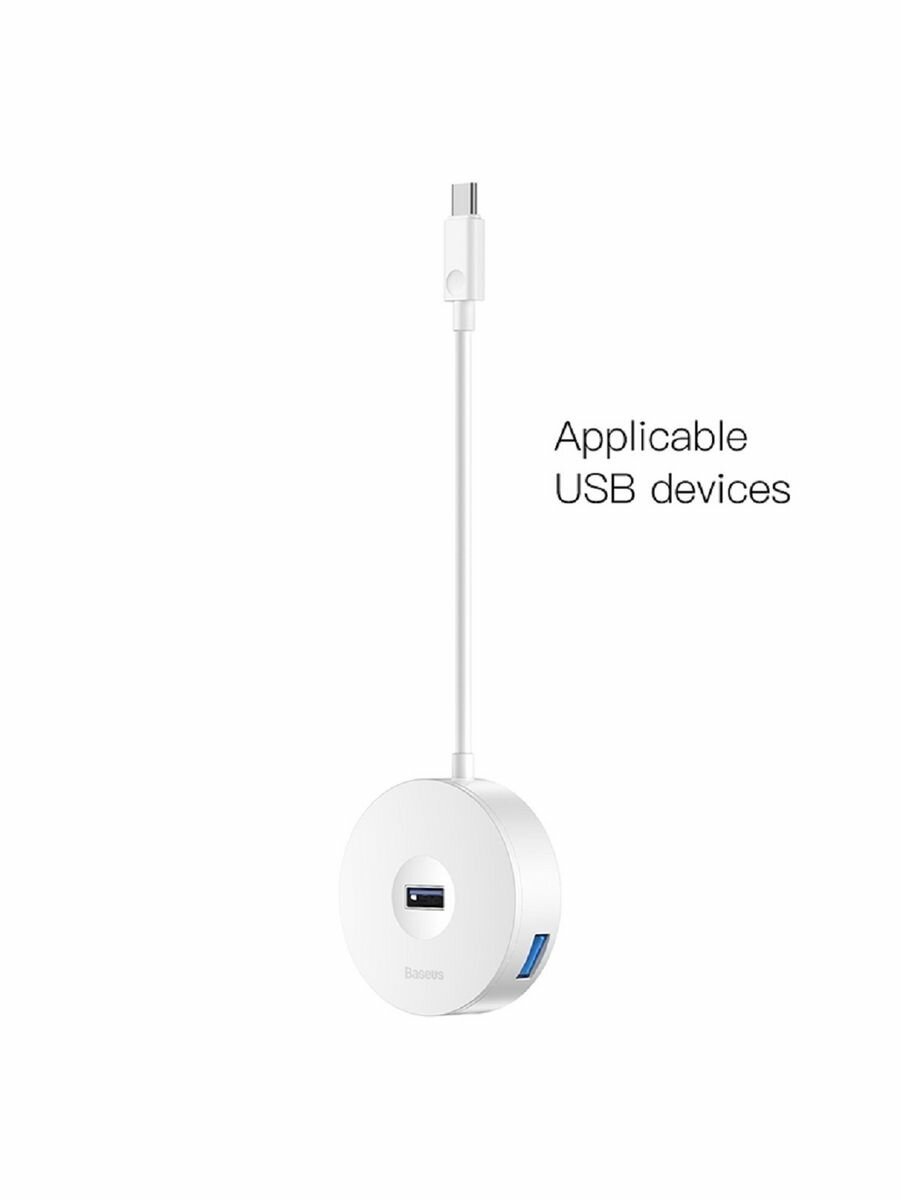 Переходник BASEUS Round Box, Разветвитель, Type-C - 1xUSB3.0 + 3xUSB2.0, 25 см, белый