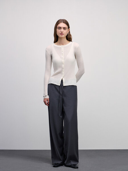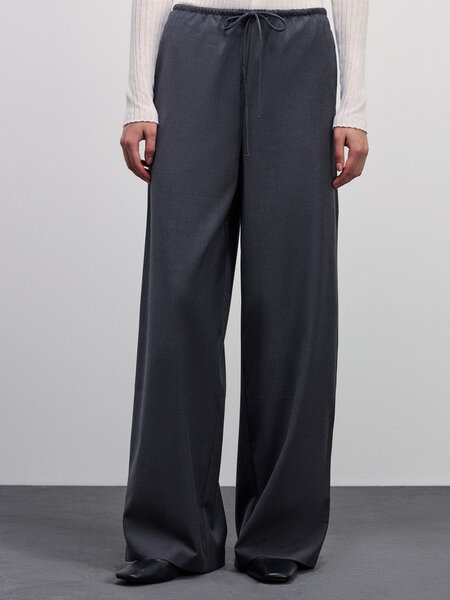 Купить Zarina Широкие брюки на кулиске из смесовой вискозы, цвет Серый меланж, размер M (RU 46), 4328258758E-38