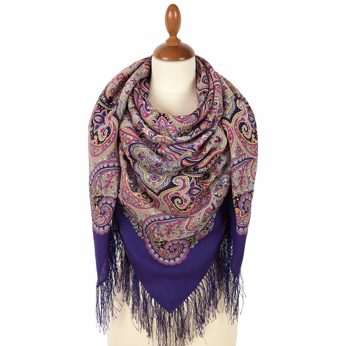 Купить Платок женский на голову шерстяной Павловопосадские платки 1928 Поцелуй русалки 15, фиолетовый, 125 х 125 см