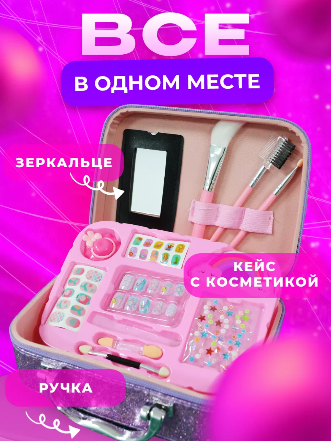 Набор детской косметики в чемоданчике/15 предметов/Большая косметичка/декоративная косметика для девочек Сиреневый интересное: