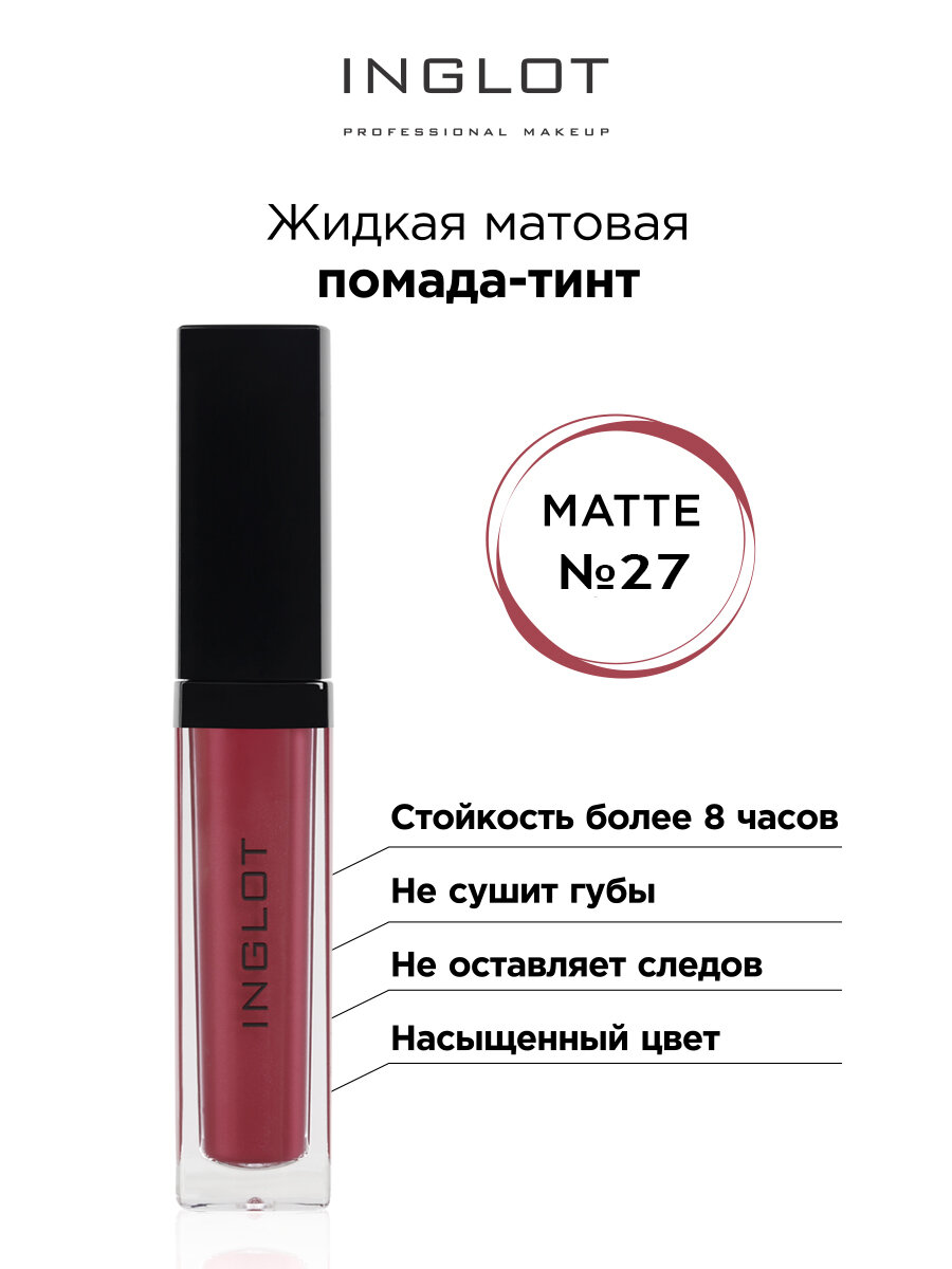 СохранитьПомада жидкая матовая INGLOT тинт 27 интересное: