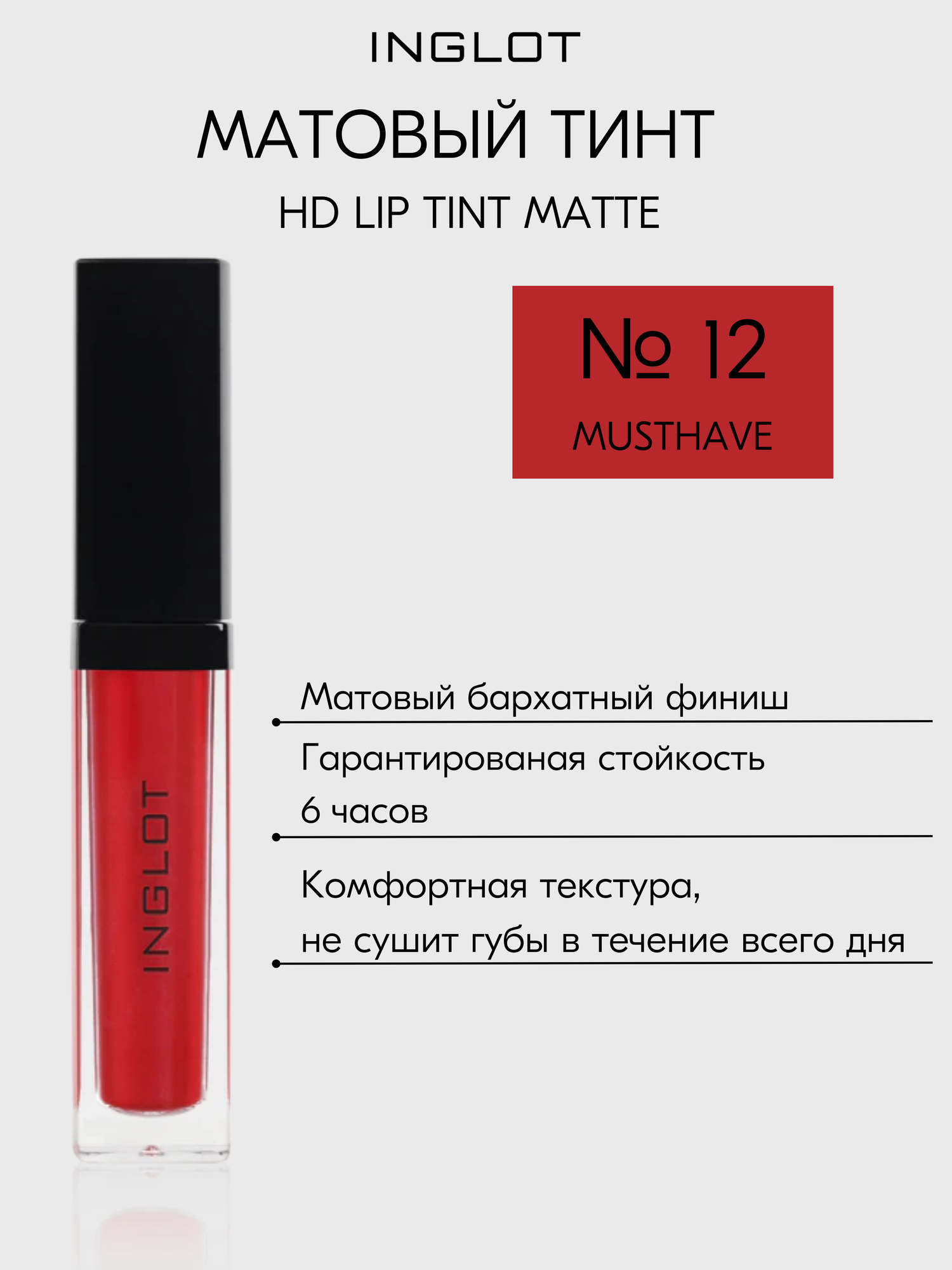 Матовая помада INGLOT жидкая, тинт стойкий с аппликатором HD Lip Tint Matte №12
