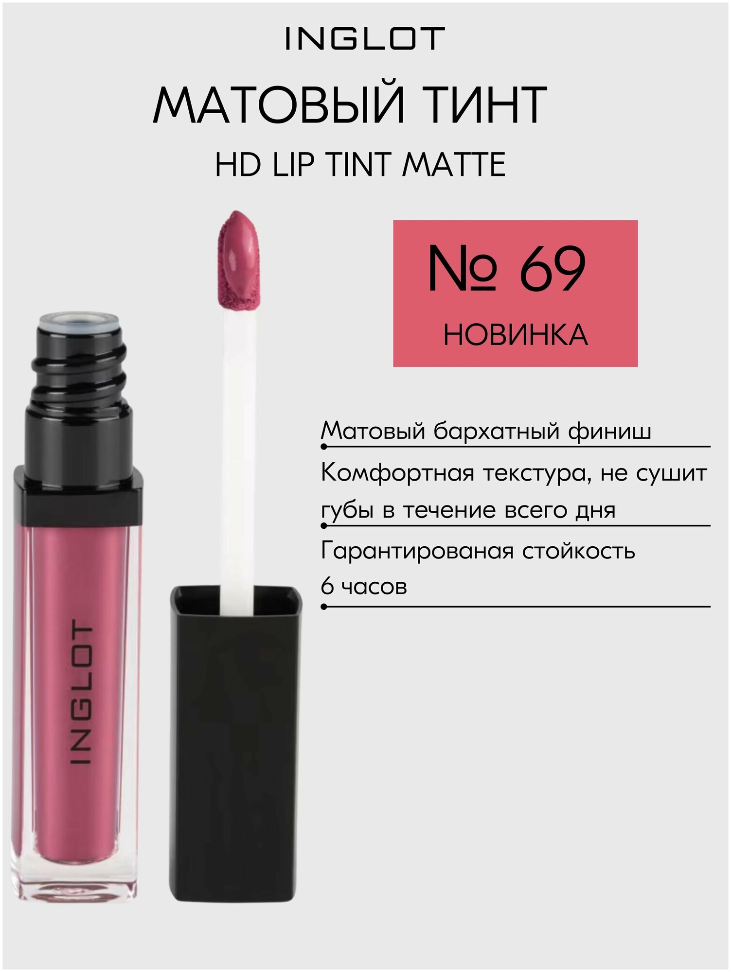 Матовая помада INGLOT жидкая, тинт стойкий с аппликатором HD Lip Tint Matte №69