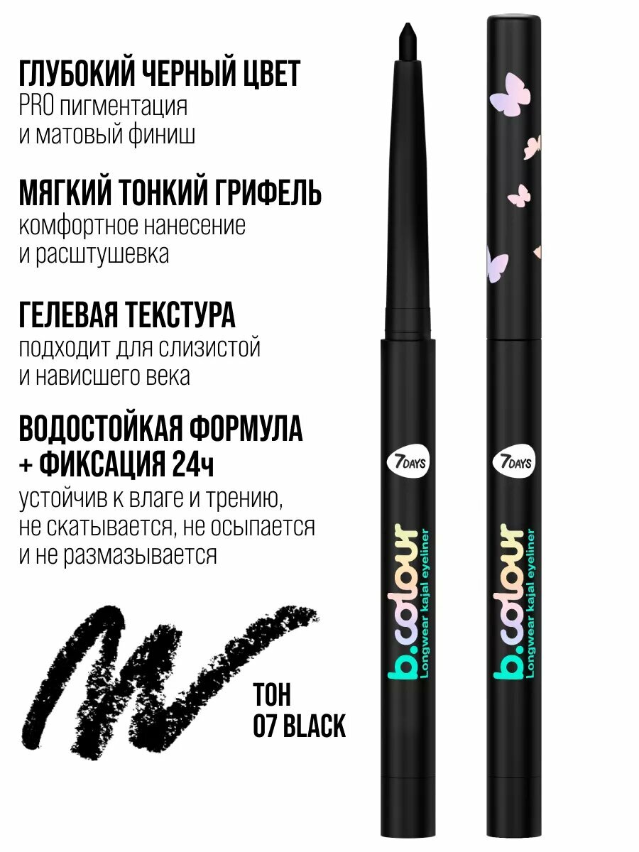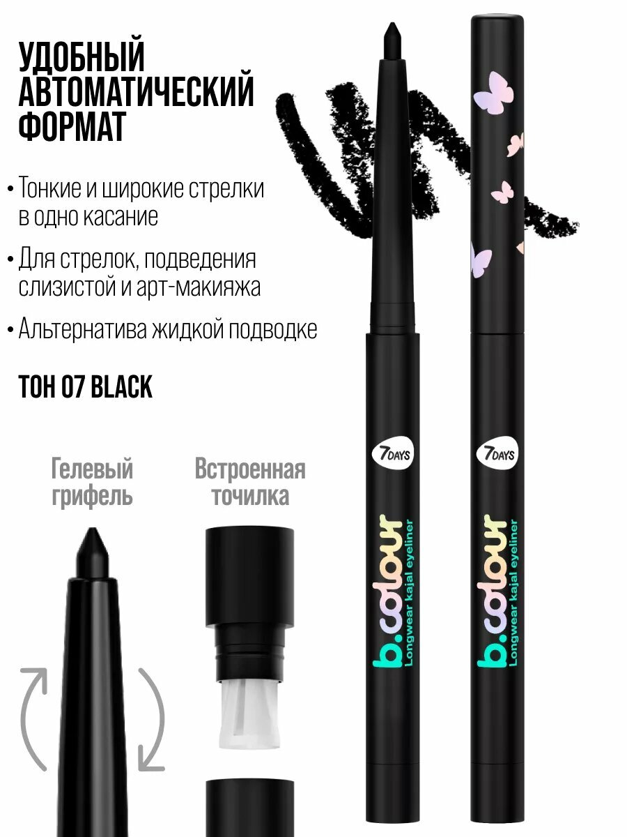 СохранитьКарандаш для глаз каял водостойкий автоматический лайнер 7DAYS B.COLOUR 07 BLACK интересное: