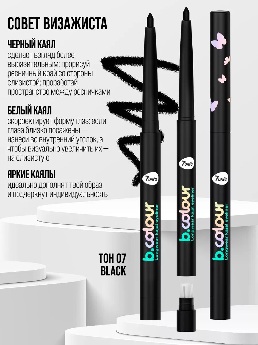 Купить Карандаш для глаз каял водостойкий автоматический лайнер 7DAYS B.COLOUR 07 BLACK