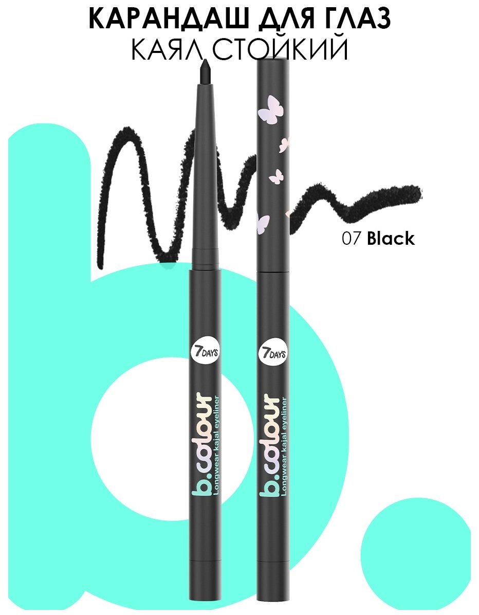 Ниже Вы можете прочитать отзывы на Карандаш для глаз каял водостойкий автоматический лайнер 7DAYS B.COLOUR 07 BLACK, ознакомится с подробными характеристиками, посмотреть интересные обзоры и фотографии на Карандаш для глаз каял водостойкий автоматический лайнер 7DAYS B.COLOUR 07 BLACK.