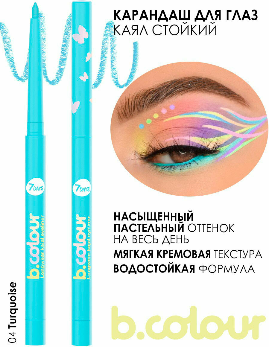 Купить B.COLOUR Карандаш для глаз каял стойкий 04 Turquo