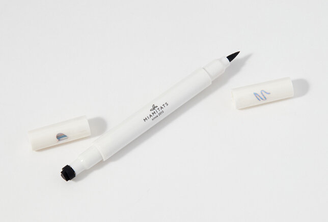 MIAMITATS Лайнер + тату-штамп (2в1) Love, подводка фломастер для глаз + тату-штамп сердечко, черная