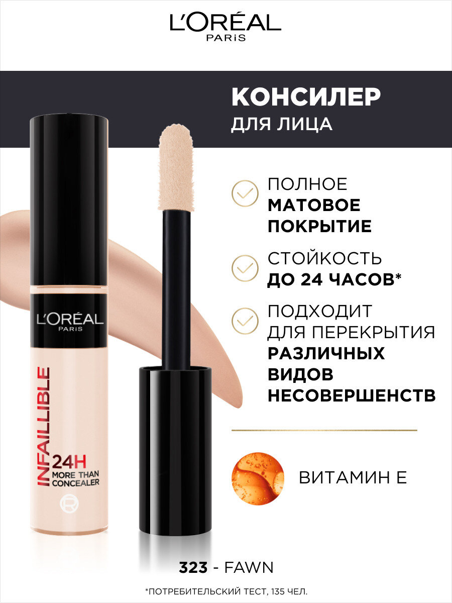 Купить L'Oreal Paris Стойкий мультифункциональный консилер Infaillible, 24 часа стойкости, оттенок 323, бежевый, 11 мл