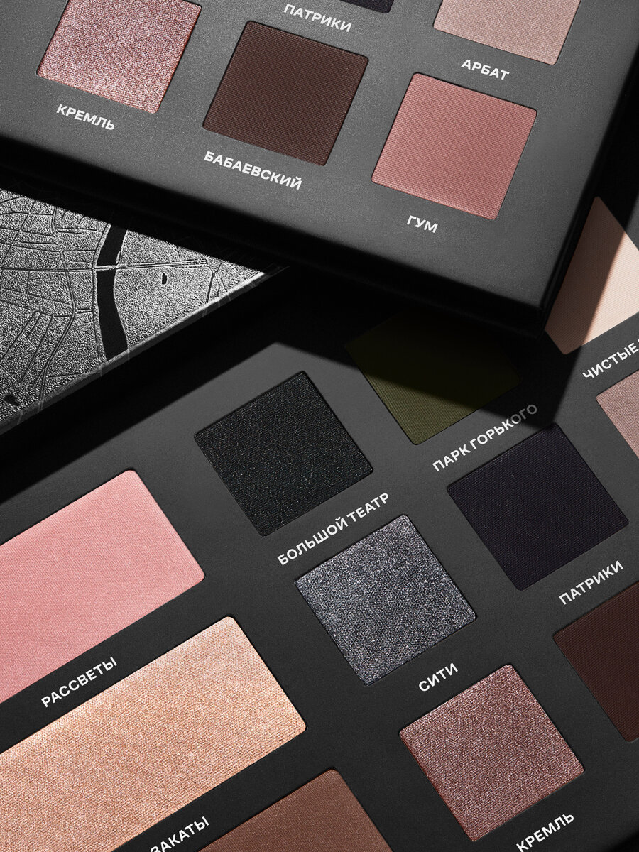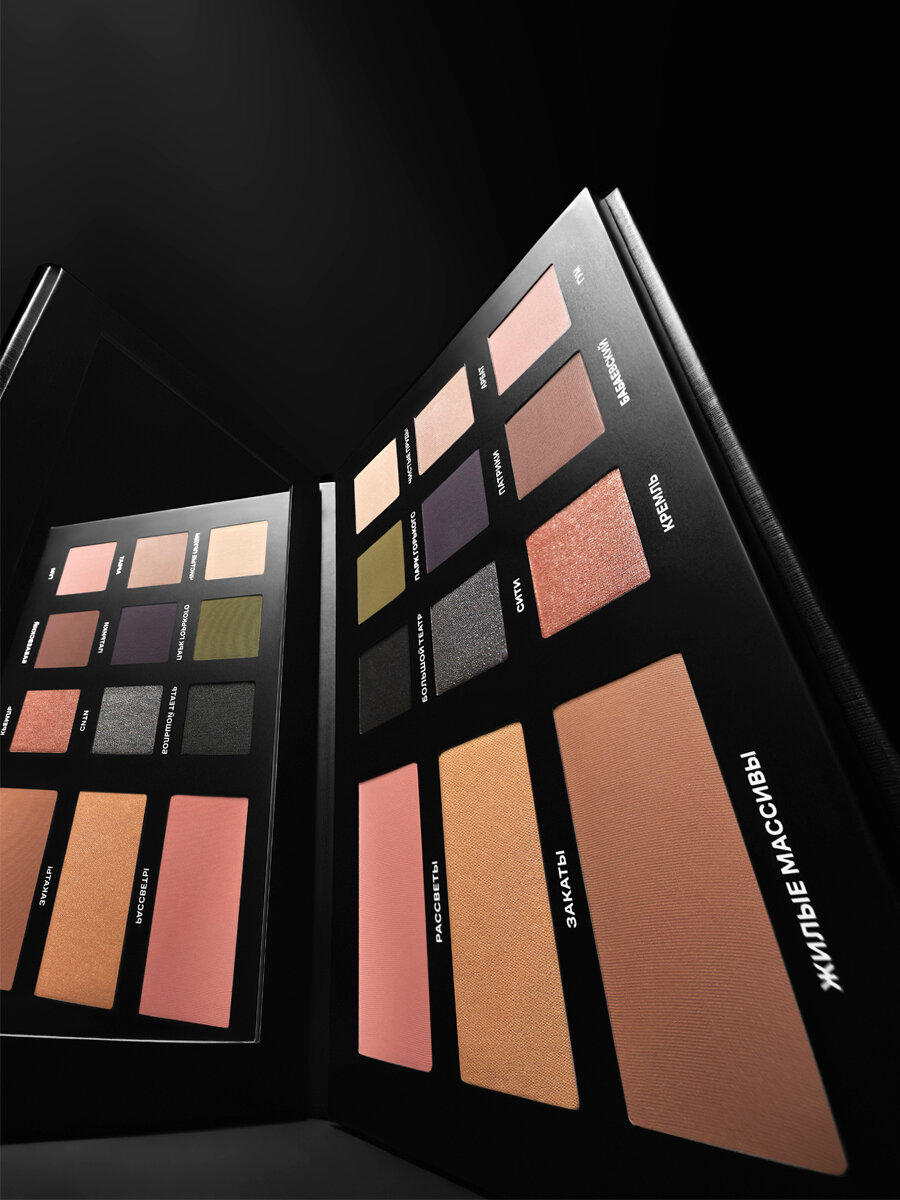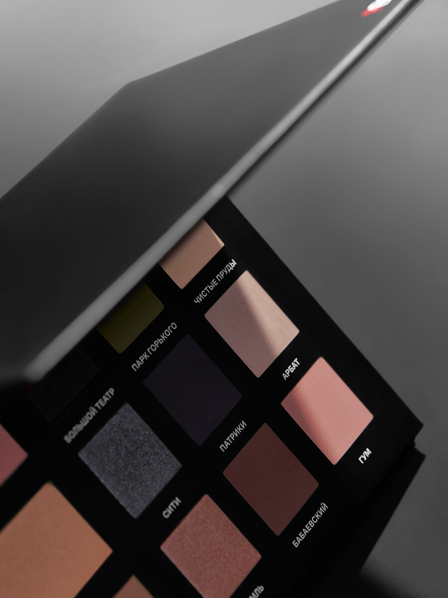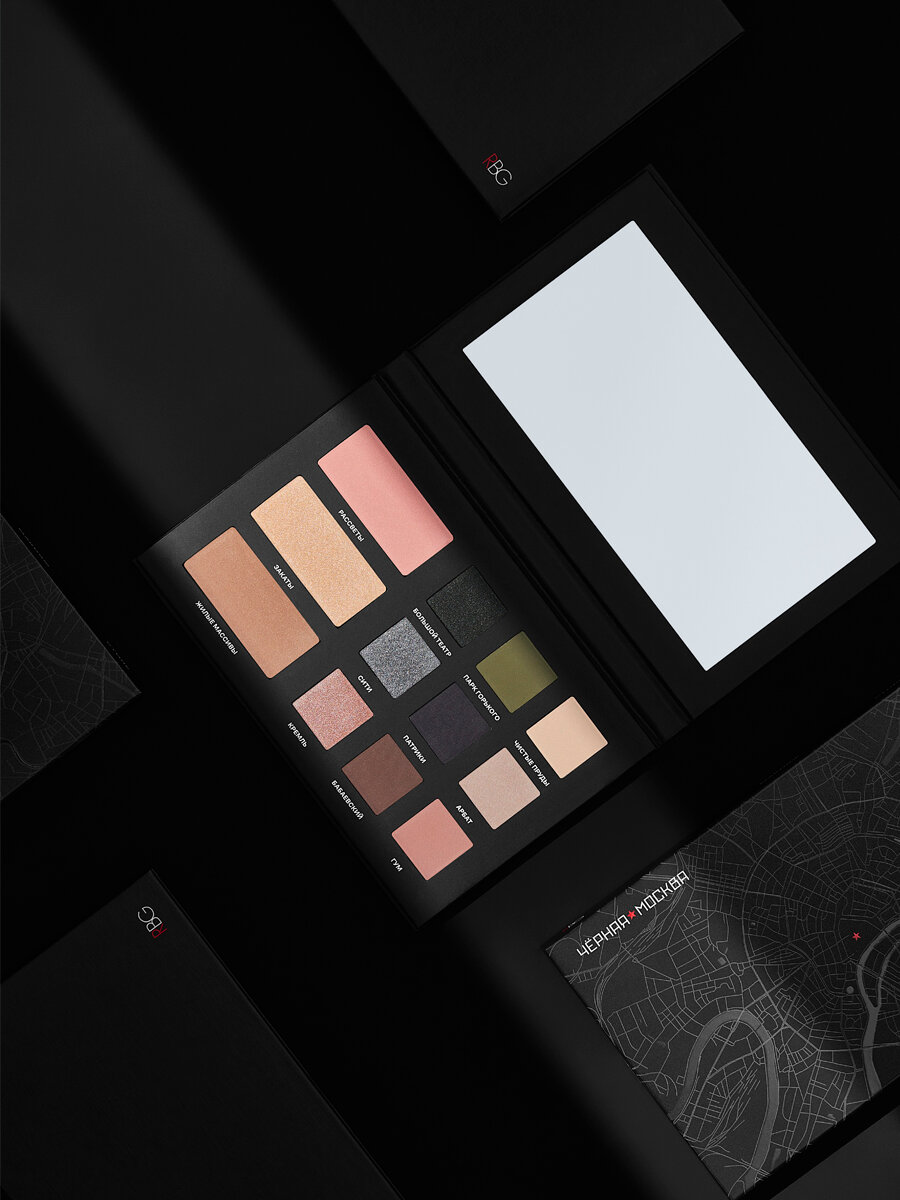 "RBG Черная Москва" - палетка теней для век с румянами и хайлайтером интересное: