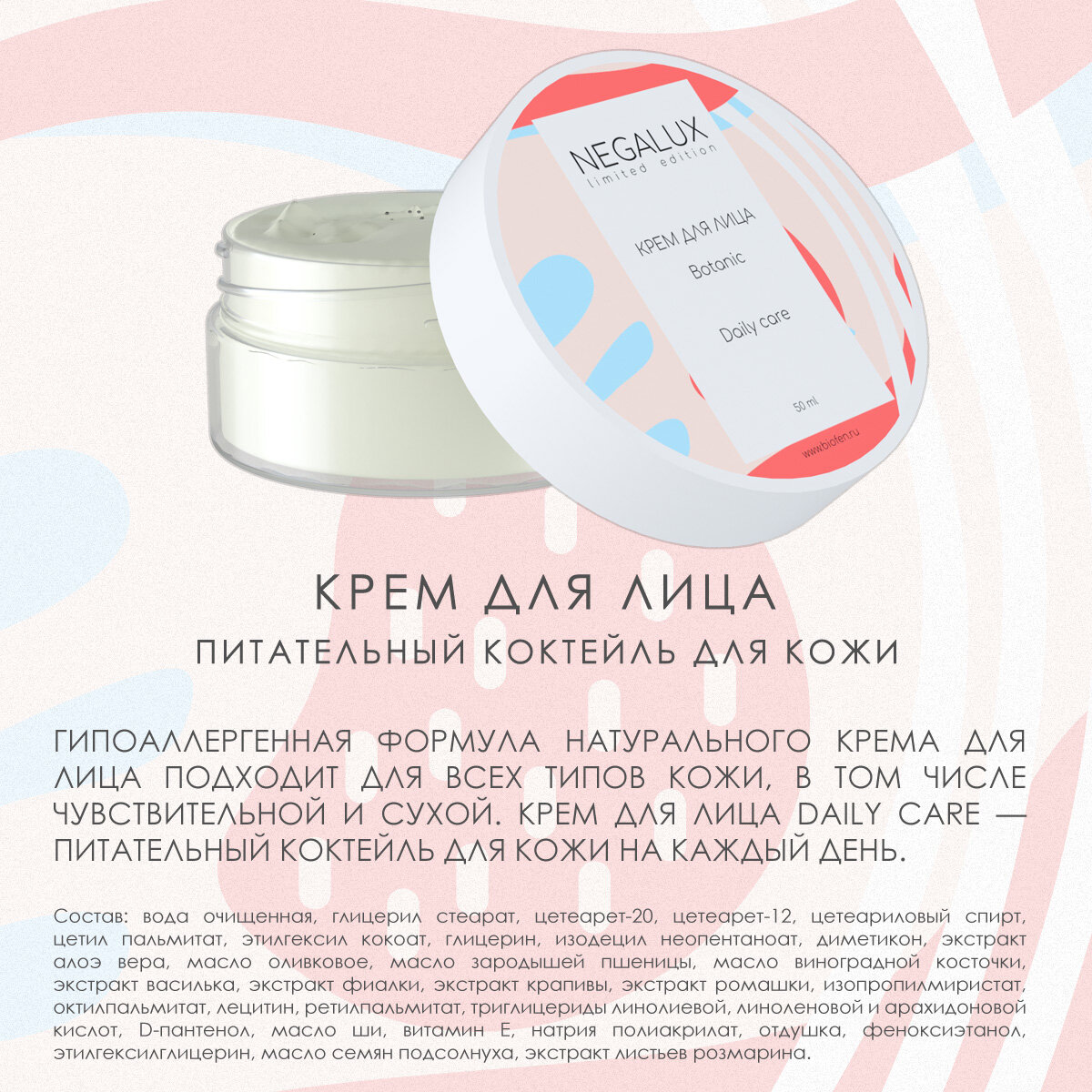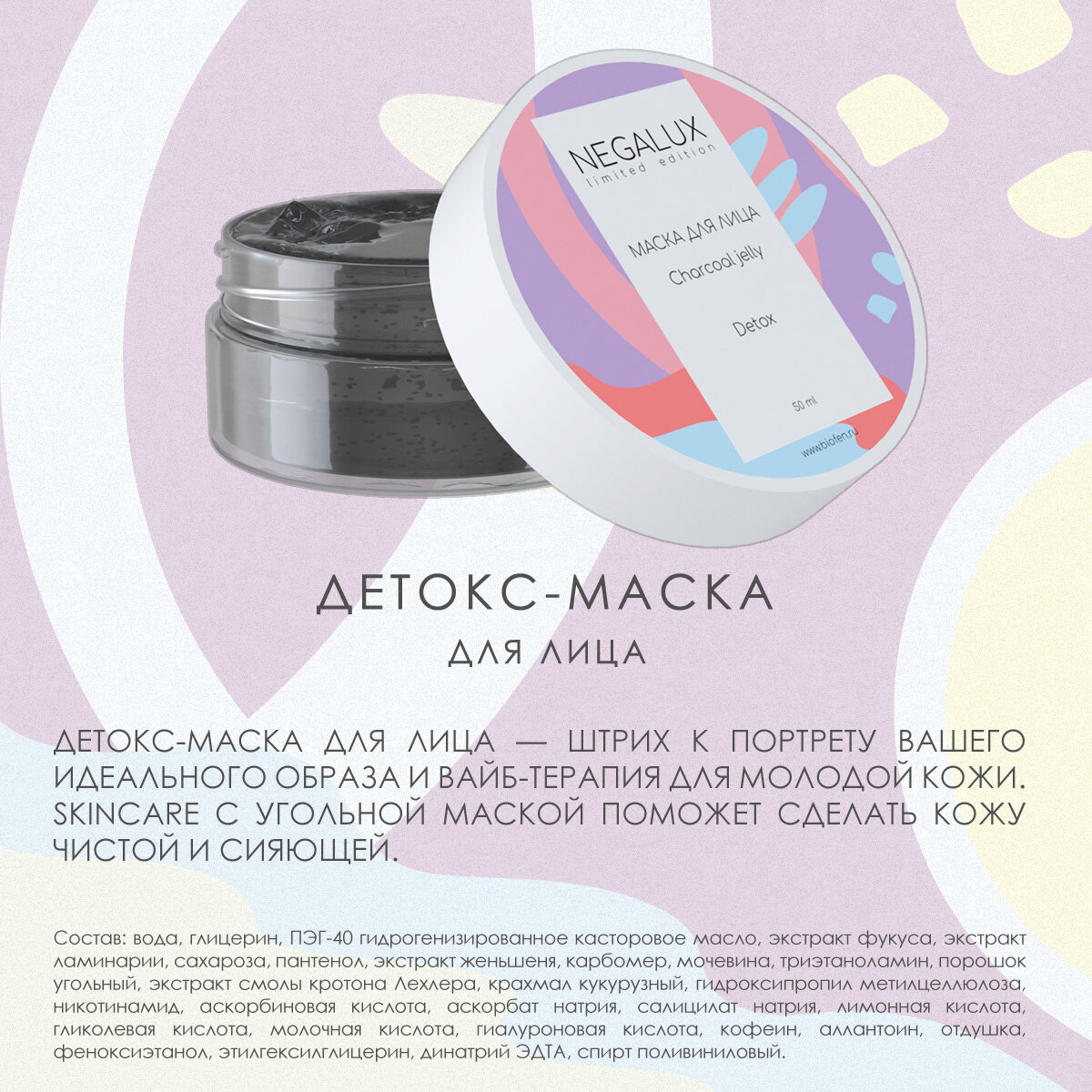 | Состав | Маска для лица / крем для лица / крем для рук / тоник для лица / гель для умывания |