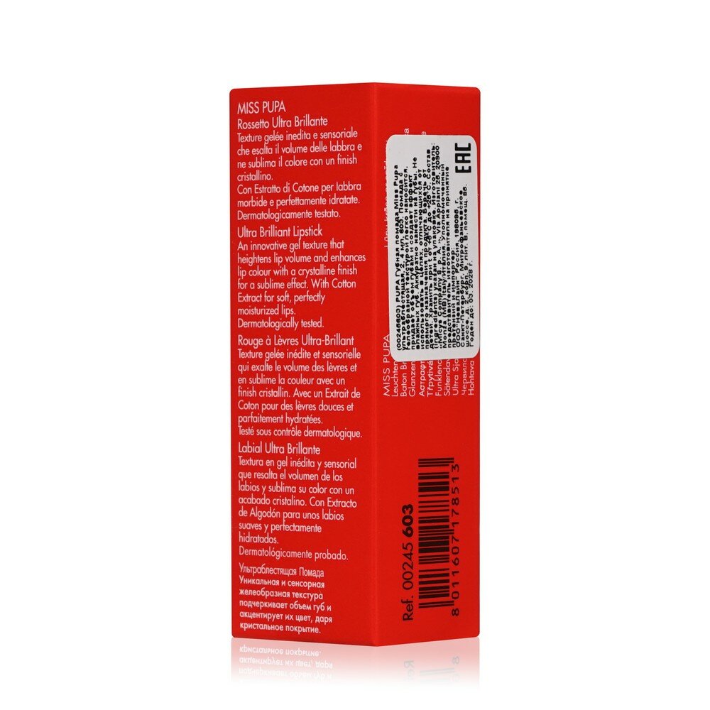 PUPA Губная помада Miss Pupa ультраблестящая, 2,4 мл, 602