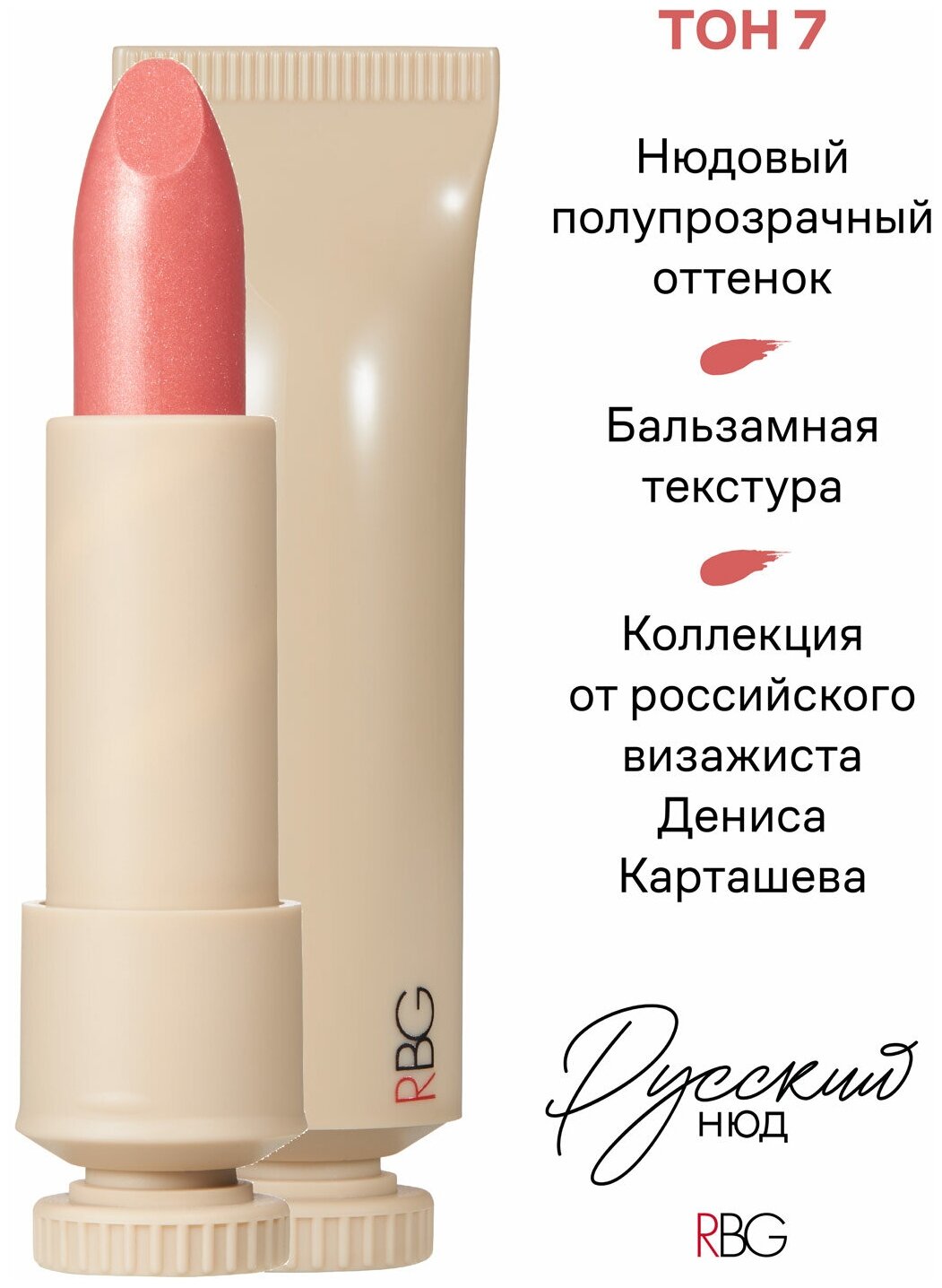 Помада-бальзам для губ RBG "Русский Нюд", увлажняющая, нежно-коралловый, тон 07.