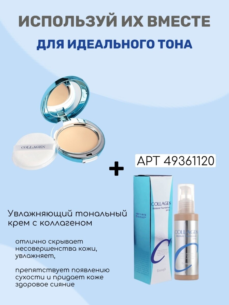 Увлажняющая пудра для лица с коллагеном ENOUGH COLLAGEN TWO WAY CAKE INCLUDING REFILL, со сменным блоком SPF25 тон 21
