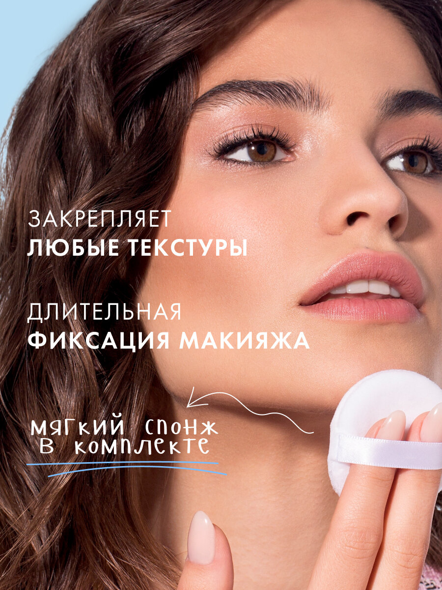 | Способ применения | Для фиксации макияжа нанесите пудру тонким слоем c помощью пушистой кисти. Для матирования и устранения жирного блеска нанесите пудру более плотным слоем. |