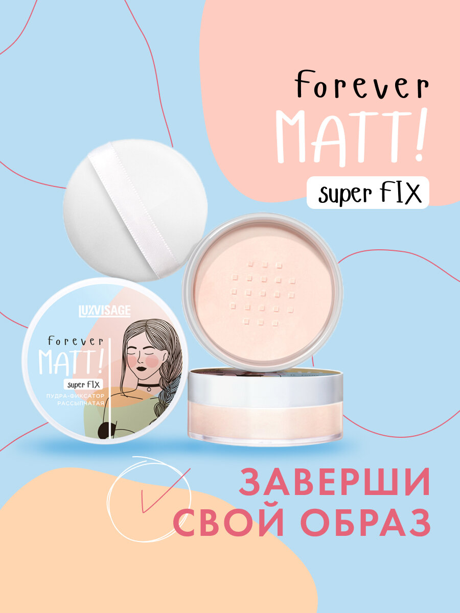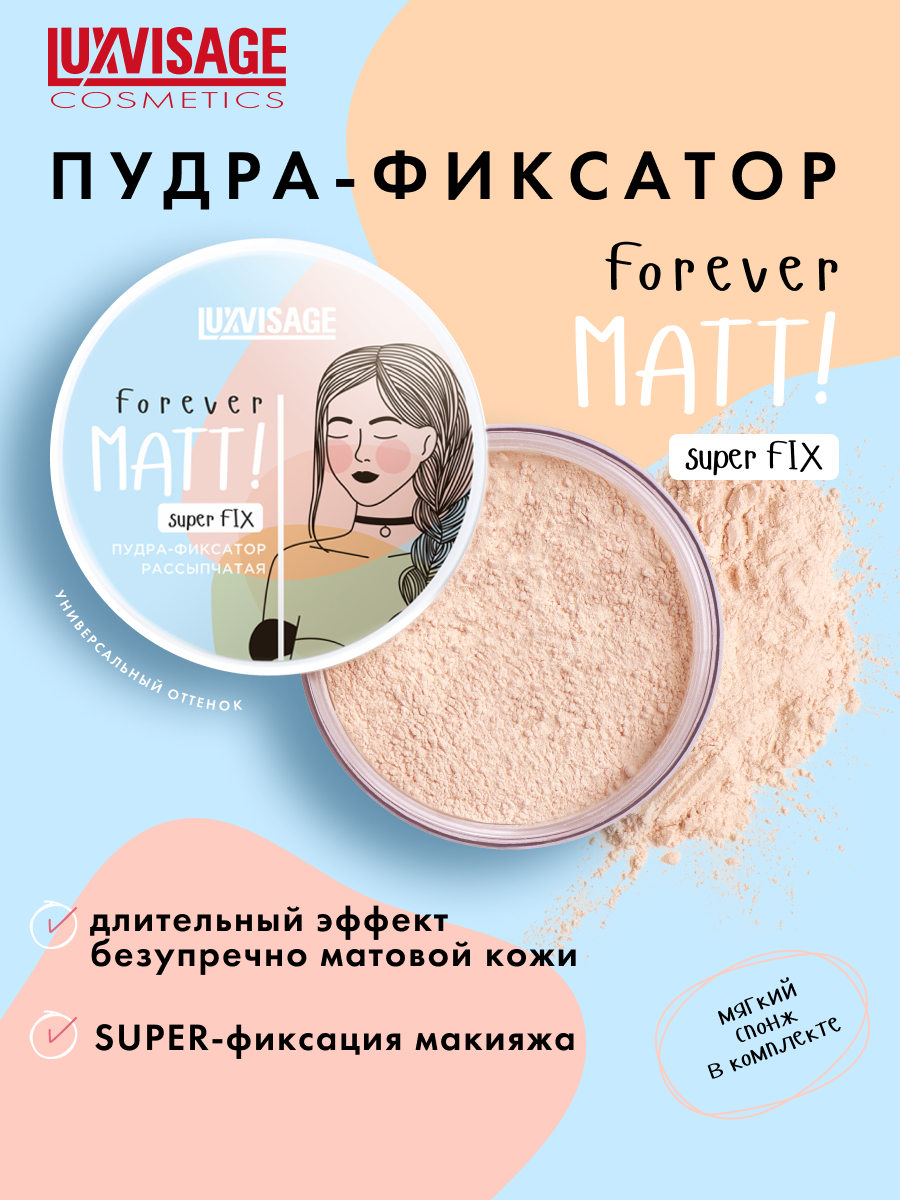 Ниже Вы можете прочитать отзывы на Пудра - фиксатор для лица рассыпчатая бесцветная Forever MATT super FIX LUXVISAGE, ознакомится с подробными характеристиками, посмотреть интересные обзоры и фотографии на Пудра - фиксатор для лица рассыпчатая бесцветная Forever MATT super FIX LUXVISAGE.